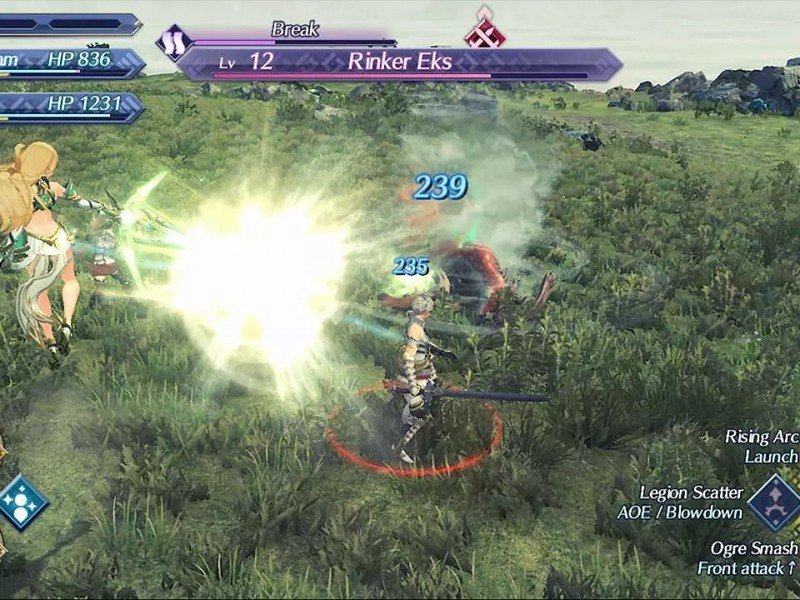 Le système de combat a été sérieusement optimisé, de sorte qu'au lieu de se concentrer sur un pilote accompagné d'un trio de lames, vous contrôlez simplement une équipe de deux personnes - un pilote et sa lame - réparties entre les positions Vanguard et Rear Guard. L'Avant-garde forme la ligne de front de l'attaque, tandis que le personnage à l'arrière le soutient, fournissant des améliorations ou des attaques supplémentaires au besoin. Lorsque votre personnage principal subit des dégâts, il apparaît en rouge sur sa barre de HP. Il s'agit de leur HP récupérable, et le fait de changer de place avec votre garde arrière vous permettra de reconstituer cette quantité d'énergie, même si vous devez être rapide à ce sujet car elle s'épuisera avec le temps. La commutation remplit également tous vos jauges d'art afin que vous puissiez immédiatement rentrer sur le terrain avec une attaque, en espérant que celle-ci finisse la créature déplorable qui se tient devant vous. Vous pouvez toujours basculer entre plusieurs lames, mais vous ne serez pas obligé de switcher entre elles de la même manière que vous le faisiez auparavant. Il existe également une autre capacité spéciale appelée Art du talent, propre à chaque personnage, et vous devez répondre à certaines exigences de combat pour l'activer. C'est vraiment une option de risque / récompense, Tora lui permet de sacrifier la moitié de sa jauge de HP pour remplir complètement toutes ses jauges Art.