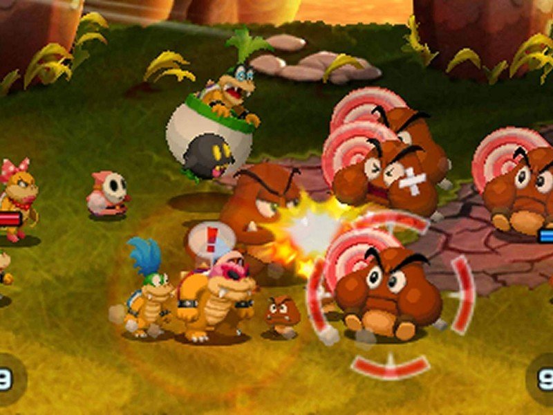Nous en arrivons maintenant à la véritable addition du jeu : L'Epopée de Bowser Jr. Ce sous-jeu est en fait une suite spirituelle à "Super Sbires Saga : Les sauveurs de Bowser" présent dans remake de la Superstar Saga. Cette histoire supplémentaire se déroule en fait dans les coulisses du jeu principal. Les Blorbs n'ont pas seulement frappé les Toads, mais aussi les Goombas de Bowser. Maintenant que Bowser lui-même est occupé avec sa propre aventure, c'est à Bowser Jr. de trouver un remède contre les Blorbs avec l'aide de Kamek, les Koopalings et leurs nombreux sujets. Les interactions entre Bowser Jr, les Koopalings et ses sujets sont vraiment très bien écrites et vous font souvent sourire. C'était très rafraîchissant de voir plus de personnalité de la part des grands méchants dans la série Mario. L'histoire n'est pas très profonde, mais les interactions hilarantes entre les personnages en font un complément incroyablement divertissant pour ceux qui ont déjà joué au jeu original. Le gameplay est quant à lui proche de Super Sbires Saga, mais avec quelques améliorations bienvenues. La base est la même : vous construisez une équipe de sujets - composée d'ennemis célèbres de Mario - qui affronte ensuite une équipe d'ennemis dans des batailles. Vous ne contrôlez pas les personnages directement, mais vous donnez des indications via l'écran tactile ou vous faites parfois une attaque puissante lors d'événements rapides. De nouvelles formations vous permettent de décider vous-même comment positionner les différents sujets sur le terrain. Certaines formations offrent des bonus, comme une puissance d'attaque ou de défense supplémentaire, de sorte que la réflexion stratégique est récompensée. En plus de Bowser Jr. vous pouvez choisir un second capitaine, qui donne aussi des bonus supplémentaires et des attaques spéciales et des techniques peuvent être exécutées pendant le combat. Bien sûr, la chance est encore un peu un facteur déterminant, mais dans une bien moindre mesure que dans la partie précédente.