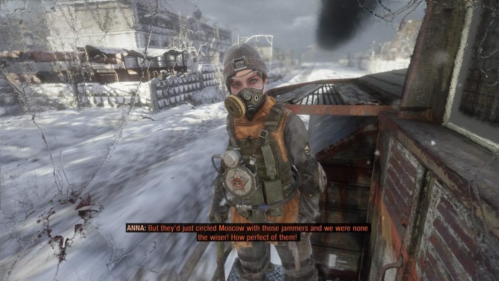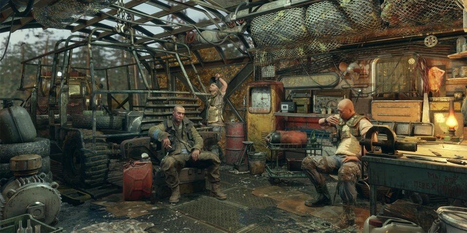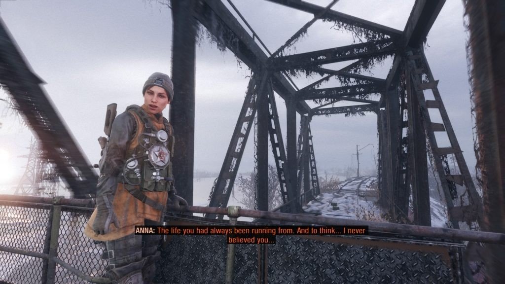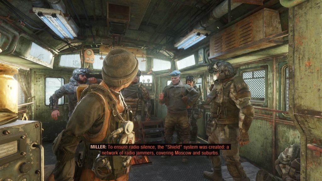 Contrairement aux anciens jeux Metro, Exodus n'est pas strictement linéaire. L'histoire l'est certainement, mais elle couvre plusieurs niveaux de bac à sable prenant part à chacune des saisons d'une année civile. Vous avez une liste d'objectifs que Artyom doit atteindre, mais c'est à vous de décider comment les atteindre et si vous vous risquez à traverser le désert irradié en explorant les bâtiments russes qui s'effondrent sur votre chemin. Ces bacs à sable saisonniers sont reliés entre eux par de brèves périodes de normalité à bord de l'Aurora, le train volé susmentionné. C'est l'occasion de se mettre au courant des dernières infos de la Russie post-apocalyptique, de lire et de parler à votre équipage, de fumer une cigarette roulée avec un vieux journal ou de célébrer votre dernière mission avec quelque chose qui ressemble à de l'huile moteur. Pour un jeu aussi sombre et violent, mettant en scène les pires horreurs de l'humanité comme le Quatrième Reich et les Bandits, c'est l'occasion de voir à quel point votre équipage est humain. Il est rare de soucier d'un équipage dans un FPS, normalement, ses hommes ne sont là que pour donner un coup de main lors d'une fusillade, mais ici, ils assurent la reconnaissance, le soutien tactique et même la couverture de tir quand vous en avez besoin. Avant même de les voir prendrez une arme, vous vous sentez prendre d'eux - que ce soit en voyant la petite fille embrasser le nounours que vous avez sauvé pour elle ou votre ami Stepan jouer de la guitare pour remonter le moral de quelqu'un. Quand votre femme Anna pose la tête sur vos genoux et commence à vous parler, vous voulez juste écouter et être un mari qui la soutient. Vous ne pouvez pas répondre, cependant, car Artyom ne parle que durant les écrans de chargement - et c'est là un défaut de Metro Exodus.