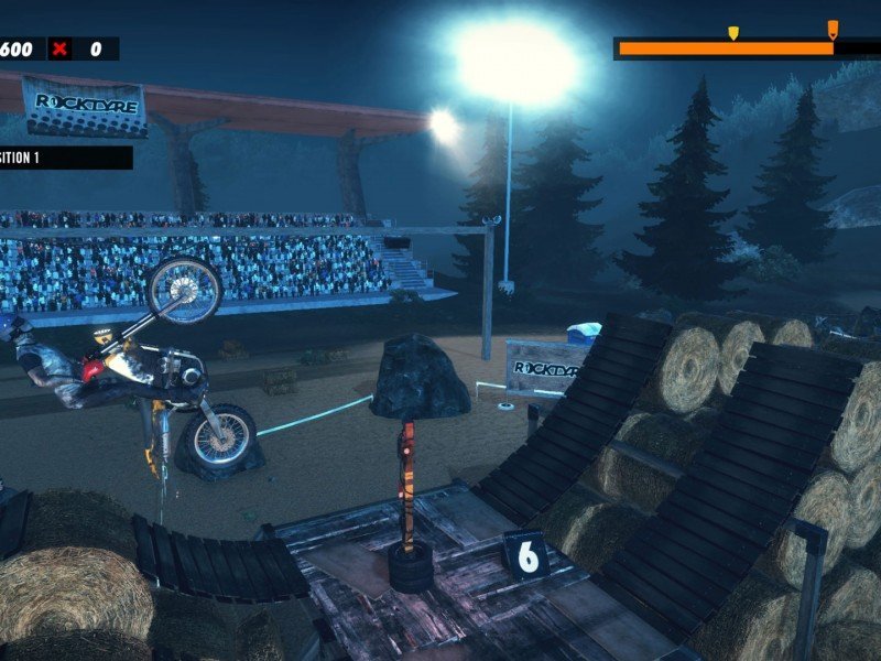 Tout cela se combine avec les environnements délicats et le gameplay addictif pour offrir une expérience fantastique, mais stimulante que nous connaissons et aimons de la série Trials. Plus vous mourrez, plus vous apprendrez et améliorerez votre propre capacité à perfectionner les mécanismes du jeu. De temps en temps, un nouveau défi s’annonce tout au long de la campagne. Vous devrez participer à une course à élimination directe dans laquelle huit PNJ traverseront un stade jusqu'à la ligne d’arrivée. À la fin, vous et le coureur final auront un duel à faire pour désigner e gagnant ultime. Ces courses n'ont pas été particulièrement difficiles et certaines étaient très faciles, mais c’était une belle pause par rapport aux autres niveaux. Les étapes comportent également des objectifs contractuels à compléter, tels que battre un autre chronomètre fantôme, obtenir moins d’un nombre spécifique de fautes ou finir sous un laps de temps donné. En réalité, rien de tout cela n’était important car tant que vous vous disputerez la médaille d’or, vous aurez très probablement atteint l’objectif secondaire. Obtenir une médaille d'or signifie simplement battre le niveau dans un délai déterminé ou le plus rapidement possible. Cela signifie que vous ne pouvez pas vous planter et réinitialiser à un point de contrôle. Cela signifie également que les objets secondaires sont également couverts dans ces conditions.