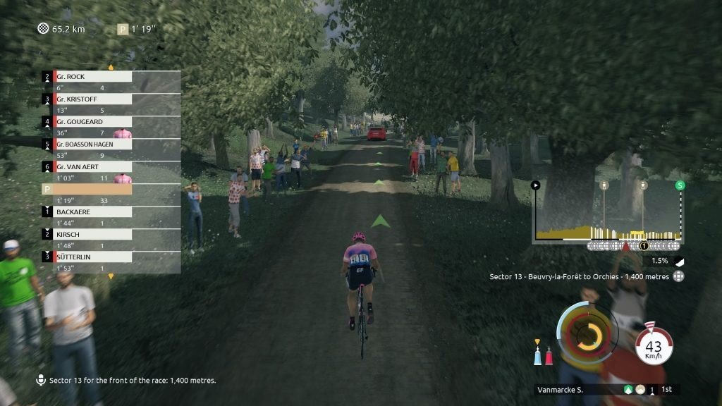 Vous pouvez modifier les noms des coureurs et des équipes, ce qui aide un peu, d'autant plus que les espaces réservés sont largement représentatifs des formations attendues par équipes pour la course elle-même. Bien que pour être honnête, cela ne change pas tellement le gameplay, surtout que tout ce que vous voyez pendant les courses est l’arrière du coureur. Vous pouvez même éditer les maillots des champions nationaux pour refléter le fait que la plupart des pays organisent leurs courses nationales le week-end précédant le départ du Tour. La licence ASO entre en jeu par le fait que d'autres courses qu'ils possèdent sont incluses ici en tant que courses de soutien, le classique Paris-Roubaix (alias l'enfer du nord) et le Critérium du Dauphiné. Le jeu peut également compter sur la présence du Tour des Flandres (Vlaanderen Classic), ou encore l'Euro Tour qui n'est pas disponible au départ. Vous pouvez également participer au Championnat du Monde, qui se déroule traditionnellement à l'automne de la saison en cours, et qui se déverrouille une fois les autres modes terminés.