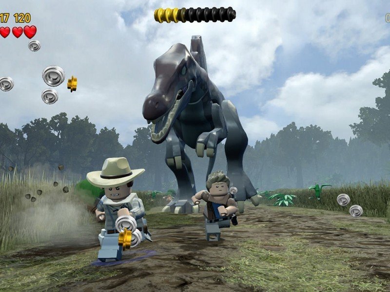 Comme son nom l'indique, LEGO Jurassic World vous permet de suivre l'intrigue du film de Colin Trevorrow actuellement en salles. Deux décennies après les événements tragiques de 1993, un nouveau parc a ouvert ses portes à Isla Nubar, au large du Costa Rica. Des milliers de visiteurs s'y pressent chaque jour pour découvrir les dinosaures, tandis que des scientifiques, sous la direction du Dr Henry Wu, étudient le comportement des animaux. Un nouvel incident ne tarde pas à éclater, cette fois dans un zoo bondé. Si toutefois vous n'avez pas encore visionné ce long métrage, il est possible de débuter l'aventure avec Jurassic Park premier du nom, une fois un court prologue effectué. Vous retrouverez alors l'industriel John Hammond, qui avec ses associés d'inGen, avait accompli l'exploit de cloner plusieurs espèces de dinosaures et de les élever au grand secret. Quelques jours avant l'inauguration du parc, l'expérience tourna rapidement au cauchemar pour Hammond et ses hôtes lorsque les Tyrannosaures, Vélociraptors et autres monstres préhistoriques décidèrent soudain de prendre possession des lieux. Le Dr Allan Grant s'en souvient encore. A noter que pour accéder aux segments dédiés à Jurassic Park : Le Monde Perdu et Jurassic Park III, il faudra au préalable terminer la première partie. Mélange d'action, de plate-forme et de réflexion, LEGO Jurassic World reprend les figures de proue de la tétralogie et affiche un soupçon d'humour si cher à la marque danoise. Jouable seul ou à deux en coopération, cette production intègre plus de 100 personnages au total, et il est même possible d'incarner une vingtaine de dinosaures (T-Rex, Tricératops, Raptor, Compsos, etc). Pour résoudre les nombreuses énigmes concoctées par les développeurs, il faudra maîtriser les compétences spécifiques de chaque LEGO, ce qui obligera très certainement à refaire certaines missions plusieurs fois afin d'y débloquer tous les secrets. Le titre permet également de former des duos pour combattre les boss les plus résistants, et il est possible de stocker plusieurs armes dans son inventaire qu'il sera possible d'améliorer grâce aux matériaux dissimulés dans les décors.
