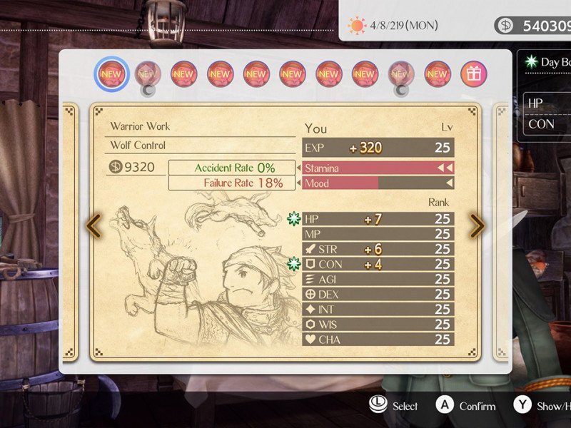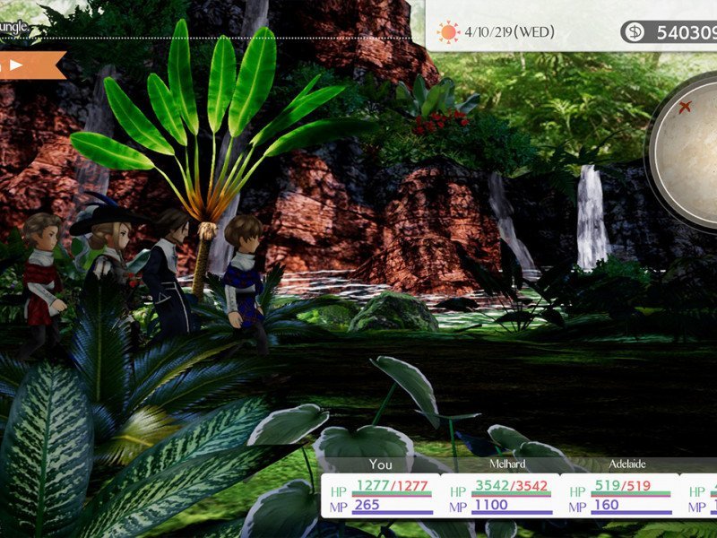 D'abord, à cause de la superficialité de son écriture, qui apporte peu de personnages instigateurs et des scènes génériques - d'où l'utilité du bouton pour accélérer les dialogues -, mais aussi parce que de nombreux moments du quotidien ne sont pas vécus : pendant les travaux, par exemple, le joueur ne voit que le personnage partir et arriver chez lui, réussir ou échouer dans sa démarche. Enfin, parce qu'il n'y a pas d'événements intéressants qui interrompent la routine et forcent une redéfinition du calcul stratégique du protagoniste. C'est ce calcul, d'ailleurs, qui nous amène à la partie des expéditions d'exploration. Au début d'une mission, le joueur forme un groupe de quatre personnages et suit automatiquement un chemin quelque part sur le continent avec une caméra fixe sur le côté. Au cours de ce voyage automatique - qui peut être accéléré comme dans les dialogues - il y aura des rencontres aléatoires et généralement un boss à la fin. Les combats se déroulent à tour de rôle, avec une vue à la première personne, et utilisent un système intéressant (Chance System) qui vous permet d'exploiter les faiblesses des ennemis tout en réalisant des combos avec les capacités des différents personnages. Ceci est également combiné avec un système de travail de vingt classes, qui rend le combat plus flexible, et certaines de ces missions peuvent être assez punitives, car lorsqu'elles sont vaincues, vous passerez quelques jours au lit à perdre des points de statut. Pendant les expéditions, il est possible d'emporter des articles de camping, tels que de la nourriture et des sacs de couchage, afin de récupérer la vie totale de vos personnages, qui se réduit progressivement au cours de l'aventure. En plus de ces objets, il est également possible d'utiliser des potions et autres consommables courants dans les RPG, qui sont particulièrement utiles lors des combats. Bien qu'il y ait des choses intéressantes dans ces systèmes, on ne peut nier que le level design est extrêmement pauvre et fastidieux : essentiellement une ligne droite parcourue automatiquement jusqu'à la fin de la mission. Le problème ne réside pas dans l'existence d'un mode d'emploi automatique, mais dans le fait que ces mécanismes sont également sous-développés. De plus, ces aventures sont très dépendantes de la vie quotidienne dans la ville. Il faut beaucoup d'activités banales, inintéressantes et automatisées (avec les problèmes exposés ci-dessus) pour monter en niveau et améliorer les attributs et l'équipement des personnages.