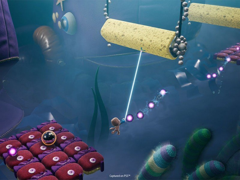 Vous pouvez jouer à Sackboy : A Big Adventure avec un maximum de trois autres joueurs, bien sur un mode en ligne est heureusement disponible, mais il est aussi possible de jouer en écran partagé local (ce qui n'est pas toujours simple sur PC). Il existe également des niveaux de coopération spécialement créés qui exploitent pleinement les possibilités d'une équipe de deux joueurs. Maintenant, si vous vous demandez si le jeu est plus un plaisir en coopération qu'une attraction en solo, nous pouvons vous rassurer : Les joueurs solitaires en auront également pour leur argent, même si les niveaux coopératifs susmentionnés ne seront pas disponibles avant la sortie du mode en ligne. Le gameplay de Sackboy : A Big Adventure est bâti sur les fondations d'un jump n run classique. Vous grimpez, sautez, vous vous accrochez et, surtout, vous attendez que votre timing vous permette de maîtriser les sections parfois délicates. Certaines parties sont des essais et des erreurs, mais avec le temps, on s'habitue aux particularités du jeu, de sorte que l'expérience dans son ensemble s'avère très cohérente. Les points de réinitialisation du jeu sont de toute façon très justes, et le système de cartes vous permet de consulter de petits guides et de l'aide, le cas échéant. Si vous cherchez quelque chose d'un peu plus difficile, il y a aussi la possibilité de jouer contre les délais. Ce n'est pas seulement une question de vitesse, mais aussi de timing parfait. Sackboy a une vingtaine de coups différents, dont la plupart sont disponibles dès la première minute. Il est gratifiant de constater que les commandes du jeu sont incroyablement précises et utilisent également le contrôleur DualSense. Ce contrôleur vous donne une très bonne sensation du sol et du rebond du petit animal en peluche. Bien sur, jouer avec une manette Xbox Series X était tout aussi bien, mais les bonus d'un DualSense comme l'haptique et l'action du haut-parleur sont trop bons pour être ignorés si vous l'avez.