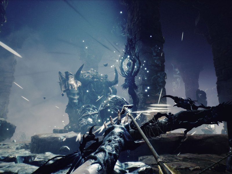 Après avoir passé l'introduction courte et déficiente, les joueurs se retrouvent catapultés dans ce qui fait office de long tutoriel. Blacktail fait immédiatement penser, par son style et ses mécanismes, à l'excellent Horizon : Forbidden West. Yaga est en fait armée d'un arc, pour lequel elle peut forger des flèches en collectant des composants et en les combinant à partir d'un menu radial. Il est également essentiel de chasser pour se nourrir et de faire face aux gnolls, aux feux de fées et à bien d'autres menaces. En bonne sorcière, Yaga peut également invoquer un balai qui servira d'appât pour les ennemis, qui deviendront des proies faciles pour nos attaques. En progressant dans le jeu, vous débloquerez également de nouveaux outils, tels que des antidotes et des flèches de différents types. Ces outils deviennent très importants pour survivre dans un monde ouvert plein de dangers, avec des araignées prêtes à nous infecter et des ennemis qui n'hésiteront pas à nous chasser à mort. Ou du moins, ils essaieront : Yaga est en fait fondamentalement immortelle et, en cas de disparition prématurée, elle s'élèvera sur des autels spéciaux où nous devrons laisser des fleurs en guise d'oboles. Il est toutefois important de les visiter souvent, sous peine de perdre tous les progrès réalisés. Contrairement à l'œuvre précitée de Guerrilla Games, Blacktail se déroule entièrement à la première personne. La seule chose que les joueurs peuvent voir sont les mains de Yaga, laissant l'accent sur le décor. Les gars de The Parasight ont en fait créé un monde sauvage qui s'inspire des légendes slaves. Attendez-vous donc à beaucoup de citations, de sculptures de dieux orientaux et à beaucoup de bizarrerie. On regrette un certain manque de profondeur, dû à un brouillard omniprésent, qui n'enlève rien à la magie du monde créé par l'équipe. Malgré des allusions aux contes de fées, qui rappellent à certains égards Alice au pays des merveilles, les thèmes abordés sont plutôt matures et conduisent presque à des moments d'horreur. Les palettes de couleurs plutôt vives sont parfois surprenantes : le monde est vert et luxuriant, parsemé en outre de personnages étranges tels que des champignons et des insectes avec lesquels on peut sympathiser. Rien de vraiment inédit cependant, même si le mélange s'avère agréable et tout à fait adapté au thème.