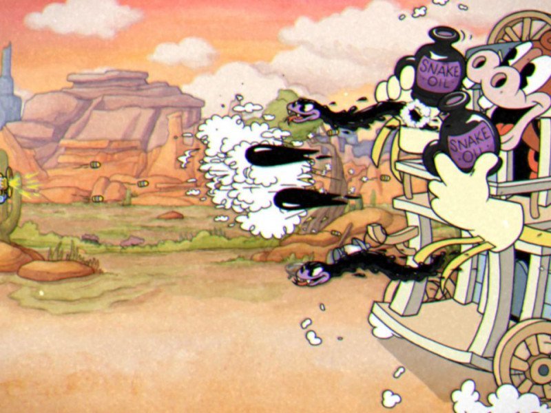 Le travail effectué par SudioMDHR pour porter le jeu sur Nintendo Switch excelle à tous les égards. On ne peut pas critiquer l'extrême difficulté de certains niveaux, car ceux-ci sont de toute façon bien conçus et jamais déséquilibrés dans la simple intention de malmener le joueur, mais nous pouvons certainement répéter que si vous n'aimez pas les défis extrêmes, vous risquez de ne jamais atteindre le générique de fin de ce jeu fou. Côté technique, il n'y a vraiment rien à signaler non plus, si ce n'est que Cuphead parvient à rester stable à 60 images par seconde dans les deux configurations de la console, avec une résolution au maximum de ses possibilités (c'est-à-dire 720p ou 1080p selon le mode), une condition fondamentale pour pouvoir profiter d'une expérience de jeu sans la moindre bavure. Cependant, s'il faut chercher le petit défaut, il se trouve plus dans le matériel que dans le logiciel. L'écran de la Nintendo Switch, en raison de sa petite taille, peut ne pas être adapté à certains types de niveaux, trop chaotiques pour permettre au joueur d'avoir un contrôle constant sur ce qui se passe à l'écran. Les JoyCon pour leur part ne sont pas non plus les plus confortables pour ce type d'expérience, surtout lorsqu'ils sont utilisés détachés de la console, mais c'est une question d'habitude. Bien sûr, la configuration TV plus Pro Controller ne peut être battue par personne, surtout si elle est associée à un bon système audio. L'arrivée de Cuphead sur Nintendo Switch a également permis aux développeurs d'enrichir le jeu original avec de nouveaux contenus très appréciés. Tout d'abord, il y a enfin la langue française, qui jouit d'une qualité vraiment impressionnante, tant dans les dialogues que dans les noms qui ont été donnés à chaque scène/boss. Nous parlons d'un véritable travail de localisation, capable d'intégrer notre culture dans le jeu, avec des expressions idiomatiques et des jeux de mots bien choisis et bien exploités. La mise à jour (intégré directement à la cartouche) apporte également la possibilité de sélectionner Mugman pour les parties en solo, ainsi que de nouvelles scènes d'interlude, des animations, des effets spéciaux - tous rigoureusement dessinés à la main - et des boss secrets cachés dans les niveaux existants.