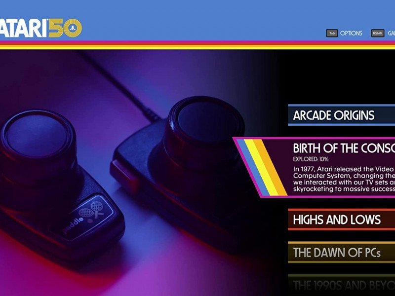 Développée par Digital Eclipse et publiée par le vétéran Atari, la collection Atari 50 : The Anniversary Celebration ressemble plus à une encyclopédie interactive qu'à un jeu proprement dit et retrace chaque moment de cette période turbulente qui comprend l'essor, la chute et l'essor de ce que nous connaissons aujourd'hui comme l'industrie du jeu vidéo. Atari 50 : The Anniversary Celebration nous emmène en voyage à travers 50 ans d'histoire du jeu vidéo. Dans le jeu, nous disposons de frises chronologiques interactives qui nous présentent des histoires, des anecdotes, des artefacts numériques tels que des photos, des pages de magazines, des manuels, des prospectus et beaucoup, beaucoup de contenu vidéo tel que des interviews et des documentaires dans une expérience cohérente où, en plus de regarder, vous pouvez jouer et interagir. La première partie de l'histoire nous présente l'origine des arcades, en 1971, dans un monde dominé par les flippers, jusqu'à ce que deux ingénieurs, Ted Dabney et Nolan Bushnel, créent une société appelée Syzygy co, créateur de la première arcade qui s'appelait Computer Space, un jeu qui consistait essentiellement en un vaisseau spatial qui devait tirer et s'échapper des projectiles ennemis dans un scénario de fond noir avec des pixels blancs, et qui serait plus tard nommé comme il est connu dans le monde entier aujourd'hui, Atari.