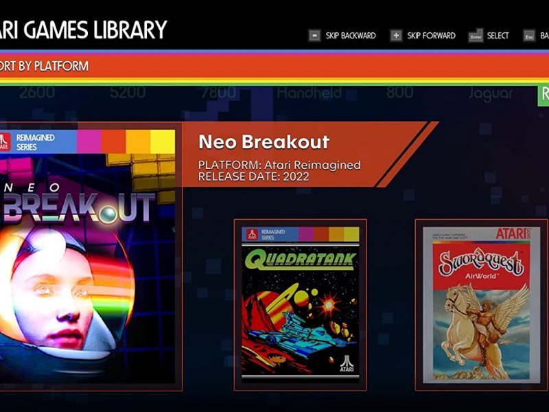Digital Eclipse n'a pas ménagé ses efforts pour nous apporter la meilleure collection jamais réalisée et les développeurs ont été attentifs à chaque détail de cette encyclopédie numérique du respect, et ce aussi bien dans la chronologie avec ses citations, ses vidéos et ses photos, que dans les jeux, les nouveautés, rendant les classiques plus accueillants pour les nouveaux joueurs. Pour commencer la conversation, vous pouvez sauvegarder n'importe quel jeu quand vous le souhaitez en appuyant sur le bouton moins et en allant dans Enregistrer le jeu, et pour charger le jeu où vous l'avez laissé, il suffit d'aller dans Charger le jeu. Oui, chaque jeu de la collection possède un Save State et cela fait que les nouveaux joueurs, peu habitués aux difficultés des anciens jeux, renoncent à finir l'aventure. En outre, vous pouvez modifier la taille de l'écran qui varie entre original, plein ou large, vous pouvez activer un filtre pour simuler un écran de télévision à tube cathodique, les célèbres téléviseurs à tube, au cas où vous seriez plus jeune et les jeux Atari 400 et 800 ; nous pouvons activer ou désactiver l'overclock. Les commandes de chacun des jeux peuvent également être personnalisées dans le menu, et enfin, la cerise sur le gâteau, tous les jeux sont accompagnés de leur manuel d'instruction original. Il convient de préciser qu'aucun titre de l'ex-Infogrames, devenu un temps Atari (et maintenant Bandai Namco Europe) n'est inclus dans cette compilation.