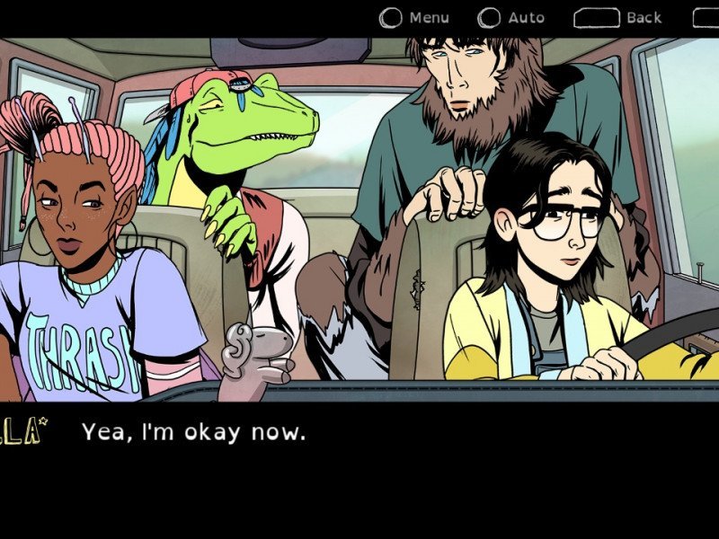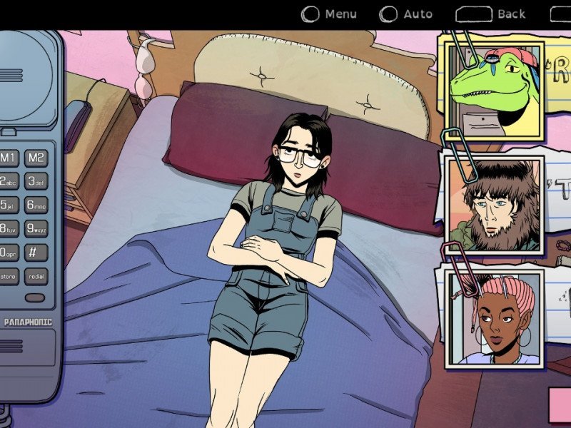Comme il est facile de l'imaginer, Raptor Boyfriend tourne autour de Stella et des personnages susmentionnés, qui forment un groupe étrange (pas aussi étrange que les couples de Kaichu, mais presque). Les joueurs peuvent approfondir leurs relations avec les trois, en choisissant, par exemple, qui appeler ou qui soutenir pendant les événements. Les choix multiples, en revanche, ne sont pas aussi simples et intuitifs. Il sera souvent nécessaire de se rappeler ce qu'un personnage donné nous a dit dans des dialogues précédents. Ce choix permet aussi parfois de débloquer des objets à collectionner spéciaux (vignettes, cassettes audio et poèmes) liés aux passions des trois amis. C'est un choix fascinant qui ajoute de la valeur au roman visuel. Ce qui lui donne encore plus de charisme est la capacité de Rocket Adrift à créer une histoire de personnages avec des rêves, des désirs et un passé à gérer. Les relations semblent vraiment authentiques, à tel point qu'il devient parfois presque douloureux d'opter pour des choix de dialogue dont on est déjà certain qu'ils décevront quelqu'un du groupe. Les trois romances sont bien caractérisées, bien que certains personnages soient assez stéréotypés. Dans ce cadre, cependant, le plus faible des personnages nous a semblé être Stella, parfois exagéré ou extrême. Les quinze heures nécessaires pour découvrir tous les secrets de Raptor Boyfriend s'écoulent néanmoins agréablement, malgré la présence du seul anglais pour accompagner le joueur. Les graphismes sont également très frappants, rappelant le style des années 90 (tout comme le décor), avec de nombreuses lignes noires et des couleurs saturées. Dans l'ensemble, l'œil reste résolument satisfait, avec de petites perles qui soulignent le grand soin que Rocket Adrift a apporté à son projet. Petit démérite plutôt pour la bande-son, qui parvient à divertir le joueur mais devient répétitive après quelques heures de jeu. Quelques pistes supplémentaires n'auraient certainement pas fait de mal. Pour le reste, la difficulté est nulle. Comme dans tout roman visuel digne de ce nom, il n'y aura pas de tests de compétences ou de défis de temps. Tout se limite à choisir les bonnes options pour terminer les trois romances et débloquer les différents objets à collectionner. Les moins patients pourront également utiliser le saut automatique de dialogue : attention toutefois à faire les bons choix, sinon vous devrez recommencer l'histoire depuis le début.