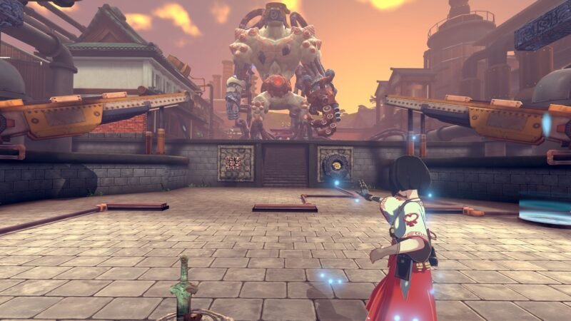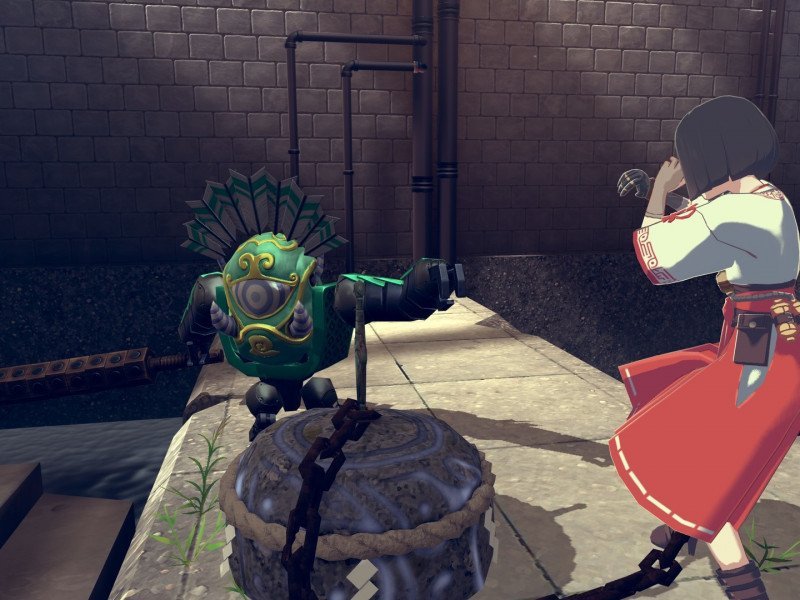 Une prêtresse appelée Haru invoque une divinité sans nom sur l'île d'Onogoro pour l'aider à empêcher Matusake de libérer le pouvoir du Nexus Total. Vous devez travailler ensemble pour arrêter Matusake qui a affaibli la prêtresse en lui enlevant certains de ses membres et en la liant à une pierre magique. La question est de savoir si vous parviendrez à éliminer tous les Kami au cours de votre périple afin de renforcer les pouvoirs de Haru et d'empêcher le Nexus total d'être libéré sur Onogoro. Ce qui est intéressant, c'est la façon dont l'équipe d'AMATA K.K. a géré la situation difficile de Haru dans le jeu, ce qui lui a permis d'introduire de multiples éléments de gameplay. Le jeu ressemble ainsi à un roman visuel narratif avec de nombreuses énigmes et enfin de l'action-aventure - et cela a vraiment fonctionné. Les éléments de gameplay s'articulent autour de vos armes célestes, qui sont deux pistolets à l'allure steam-punk. Elles vous serviront à collecter et à utiliser les trois éléments du jeu, à savoir le feu (rouge), le vent (vert) et la pierre (jaune). Vous les utiliserez également pour interagir avec des objets tels que des interrupteurs et des boîtes, ainsi que pour soulever Haru sur la pierre magique et la déplacer, car elle n'est pas assez forte pour se déplacer seule. Cela permet de les utiliser pour tous les aspects du jeu liés aux énigmes, ainsi que pour les combats. Les énigmes sont assez simples au départ, mais elles gagnent en difficulté à chaque chapitre, tout en devenant de plus en plus grandioses. Dès les premières énigmes et jusqu'à la fin, on sent que l'équipe a beaucoup réfléchi, ce qui les rend divertissantes. Dans les puzzles, vous allez utiliser les trois éléments contre leurs cibles. Cependant, ces éléments ne sont pas toujours disponibles et vous devez résoudre des énigmes pour vous déplacer, détruire des obstacles ou déverrouiller des portes pour obtenir ce dont vous avez besoin ensuite. Ajoutez à cela la nécessité de placer Haru à côté de pierres de prière et d'actionner des interrupteurs avec vos armes célestes pour activer certaines parties des puzzles. L'ajout de tant d'éléments a certainement permis aux joueurs d'être créatifs avec les puzzles jusqu'à la fin.