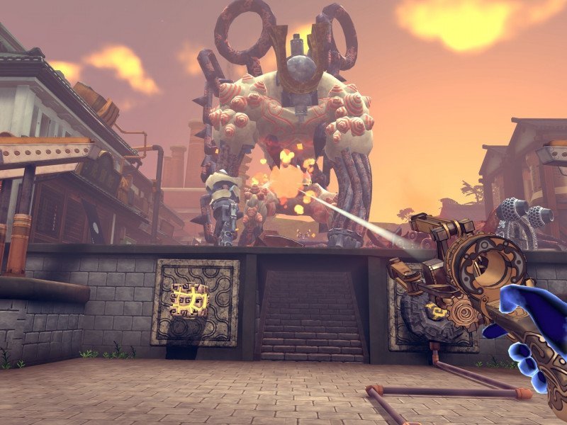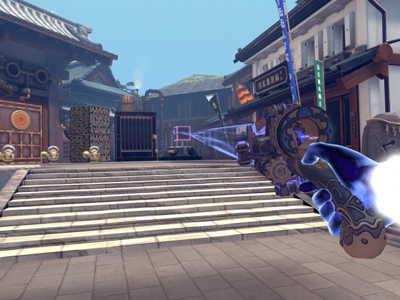 AMATA K.K. a vraiment adopté une approche intéressante avec le style visuel du jeu, avec Haru, Matusake, le Kenzoku et Kami tous en cell-shading et les environnements ressemblant à quelque chose de JRPG. Au début, cela nous a un peu déconcerté, mais nous nous sommes vite pris au jeu et le mélange des styles aidait vraiment les visuels du jeu à se démarquer, tout comme le mélange des éléments de gameplay. Comme il s'agit d'un jeu axé sur l'histoire qui utilise beaucoup de dialogues parlés, il était très important que le jeu dispose d'une interprétation vocale solide - et c'est le cas. Les acteurs anglais et japonais ont fait un travail fantastique, et les sous-titres sont disponibles, ce qui signifie que vous pouvez utiliser l'audio japonais si vous voulez profiter pleinement du jeu. En dehors des voix, tous les effets sonores et l'utilisation de la musique orientale plantent le décor et vous immergent dans l'île d'Onogoro. En ce qui concerne le confort, le jeu peut être joué assis ou debout, et inclut toutes les options de mouvement que l'on attend désormais des jeux VR. Il permet la téléportation, la locomotion fluide, la rotation rapide, les vitesses de mouvement, les vignettes et les mouvements orientés vers la main ou la tête. Le jeu est donc accessible à tous les types de joueurs. Les commandes restent simples, les analogues étant utilisés pour les mouvements, les poignées pour ramasser vos armes célestes et les gâchettes pour déplacer des objets, collecter des pouvoirs élémentaires et tirer.