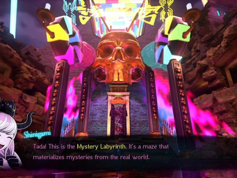 L'aventure nous met d'emblée dans la peau du Maître Détective Yuma Kokohead, allié à une improbable Déesse de la Mort (Shinigami) et voué à résoudre tous les mystères du monde... A l'exception d'une terrible amnésie qui lui brouille complètement la mémoire. Nous devrons nous rendre dans la ville de Kanai Ward, où le style anime se marie à merveille avec l'âme Neon Punk de la ville, et résoudre tous les mystères qui se présenteront à nous. Le titre se présente alors sous la forme de 5 chapitres plus un prologue d'enquête, et une fois la dernière enquête terminée, nous arrivons au générique de fin. Chaque cas est divisé en deux moments distincts : la phase d'investigation, où nous nous déplacerons en trois dimensions dans le scénario proposé à la recherche d'indices, et la phase de résolution proprement dite, où nous utiliserons les connaissances acquises au cours de l'enquête pour percer les mystères du cas en cours, l'un après l'autre. Nous préférons garder le silence sur les thèmes abordés par le récit, étant donné les multiples facettes du genre qu'aborde Master Detective Archives : RAIN CODE. Nous passons de meurtres impossibles dans des pièces scellées à des affaires vraiment, vraiment teintées d'horreur et de gore. Le titre excelle à masquer cette double nature de son titre grâce à son esthétique anime qui, tel un Janus persuasif, est prêt à nous fasciner et à nous horrifier en même temps.