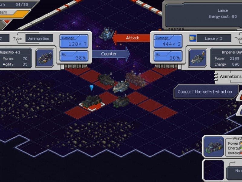 En tout cas, Chaos Galaxy fait un excellent travail en créant une boucle de gameplay qui oblige le joueur à exploiter ces mécaniques, par exemple en alternant des conflits de différents types au cours de la campagne, allant d'une diplomatie difficile à des guerres à grande échelle. Les conséquences d'une gestion avisée de cet aspect du jeu sont d'ailleurs projetées sur la composante stratégique, puisque la production de ressources et la présence pas trop importante d'ennemis belliqueux dessinent la situation à partir de laquelle un affrontement commence. Ce sont précisément les affrontements qui constituent la deuxième partie de Chaos Galaxy. Ils se déroulent sur un champ de bataille divisé par une grille, où les différentes unités se déplacent jusqu'à ce qu'elles aient les unités ennemies à leur portée. Il est alors possible d'attaquer, en profitant du combat au tour par tour, où les classes d'unités entrent en jeu. Les Mecha, par exemple, peuvent se déplacer à travers les champs d'astéroïdes et esquiver plus facilement, ce qui les rend très utiles pour les flancs ou les assauts rapides. En revanche, lorsqu'ils subissent des dégâts, leur nombre est réduit, ce qui diminue leur puissance d'attaque. En revanche, les vaisseaux spatiaux sont moins "manœuvrables", mais disposent d'une plus grande puissance de feu et de réserves de munitions. En général, cependant, les combats se déroulent à l'aide de compétences, influencées précisément par la grille de jeu et les éventuels obstacles environnementaux. Il y a ensuite les commandants, qui possèdent chacun des capacités spécifiques pouvant être activées après un certain nombre de tours, ce qui permet au joueur de changer littéralement le destin d'une bataille.
