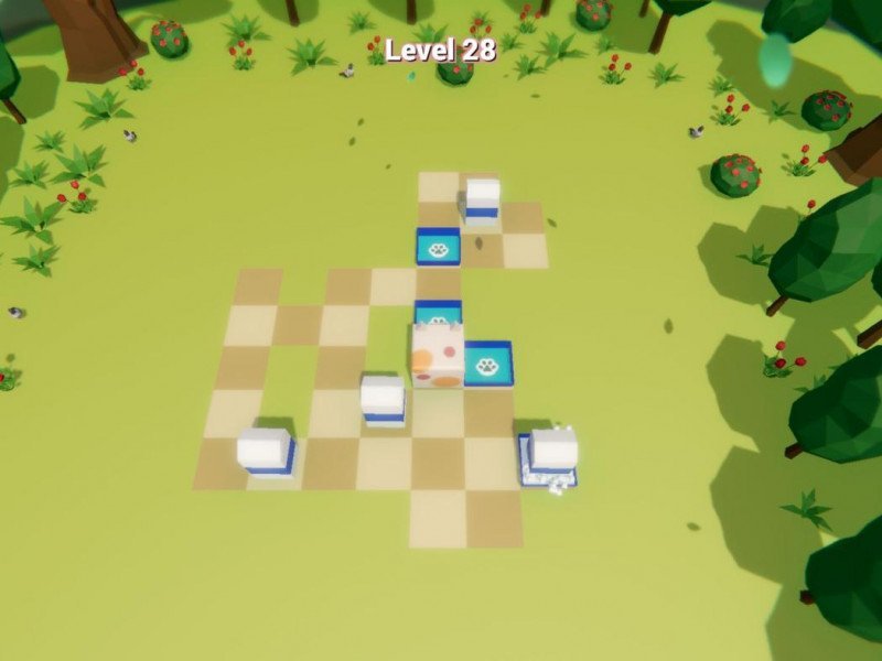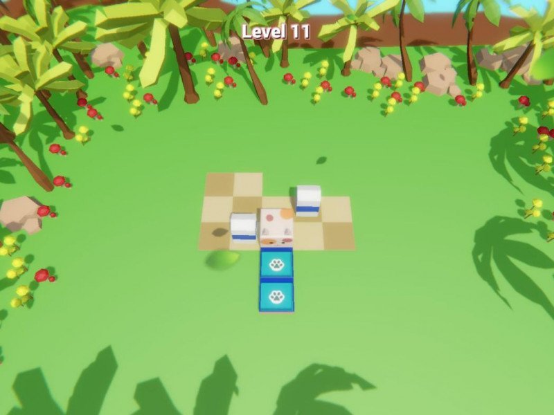 Bien trop souvent, nous nous sommes retrouvés à devoir simplement pousser le lait sur la boîte désignée, sans avoir à réfléchir à un chemin ou à la bouteille à déplacer en premier, ce qui, après un court laps de temps, a conduit à une perte immédiate d'intérêt pour le jeu. Ce facteur ne s'améliore que dans le dernier monde, où il n'est pas nécessaire de réfléchir beaucoup, mais où un minimum de stratégie est requis. Bien trop peu pour un jeu de puzzle. En dehors du mouvement, nous n'avons que la possibilité de revenir en arrière à partir des trois derniers mouvements de Milo, ou de réinitialiser le niveau. Si l'on se place du point de vue du joueur qui cherche à se divertir, ce titre n'est malheureusement pas intéressant, même pour les plus grands amateurs de puzzle games, justement parce qu'il n'y a pas ou peu de puzzle. Le discours change cependant si l'on détourne le titre vers un public plus jeune, voire très jeune, ou n'ayant quasiment aucune expérience dans le domaine. Ici, le gros chat Milo pourrait être en mesure de divertir et d'amener le joueur sur le terrain. Même sur le plan technique, le titre ne laisse rien présager, il est (trop) simple, comme tout le reste. Un monde, cependant, a une couleur de fond similaire à celle de certains carrés de la carte, ce qui est un peu déroutant. La bande-son, inutile de le préciser, est simple et relaxante.