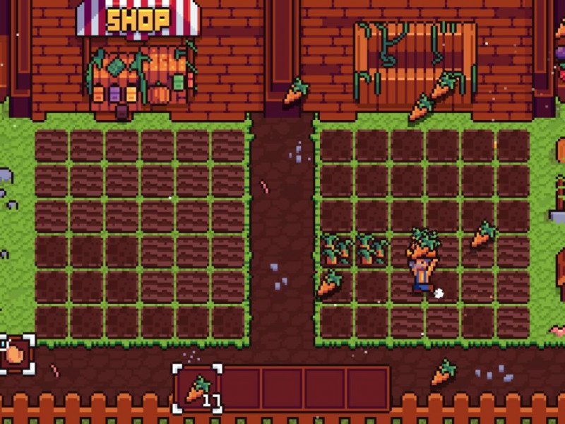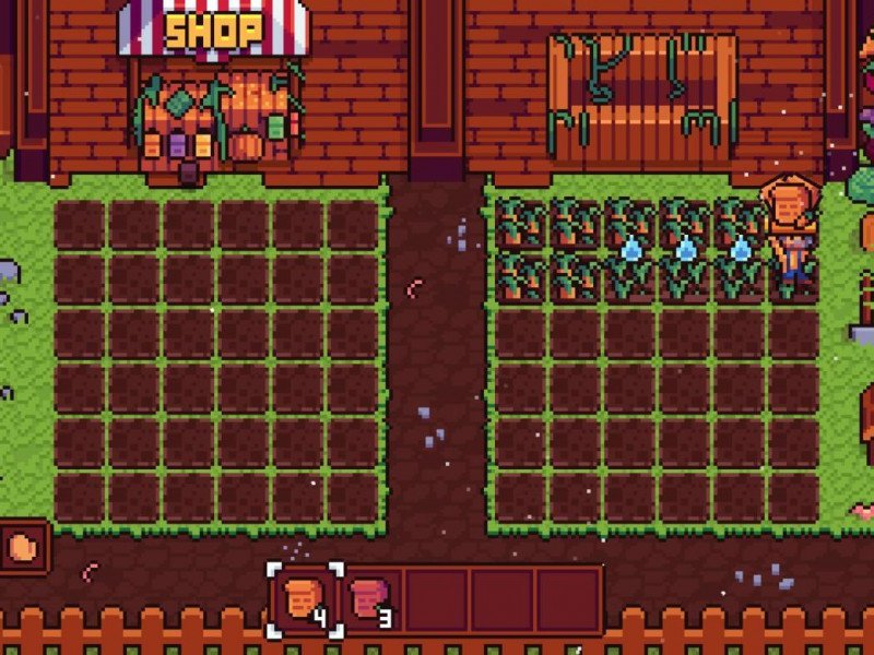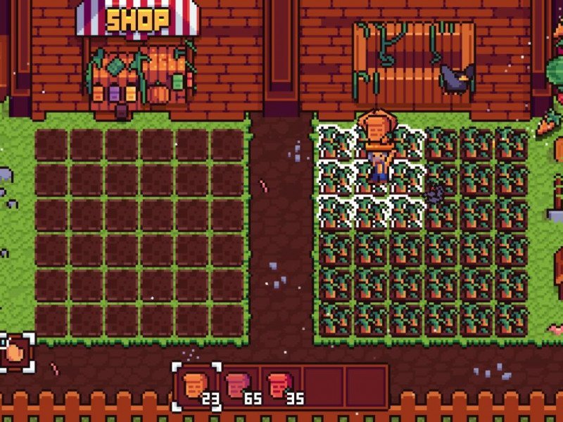 Développé par Nerd Games et édité en synergie avec Eastasiasoft, il s'agit d'un petit jeu de gestion agricole divisé en défis chronométrés. Trivialement, il s'agit de remplir une série d'exigences de niveau en niveau. Agriculture n'a aucune intrigue. Rien du tout. Pas même un prologue, une vidéo d'introduction, quelques lignes pour simuler un semblant de décor. Rien. D'autre part, le titre n'a pas l'intention de raconter une histoire ou de justifier notre activité. Ce qu'il faut savoir est visible à l'écran : nous sommes un agriculteur avec sa propre terre (divisée en deux massifs) et une série de tâches à accomplir avant la fin du temps imparti. C'est tout ce qu'il y a à savoir. Après avoir constaté que Agriculture est dépourvu de toute trame narrative ou de lore quelconque, il est bon de prendre sa houe, son arrosoir et ses graines et de commencer notre voyage à travers les champs pixelisés. Agriculture se présente comme un jeu de gestion agricole mais a en fait une structure de jeu de puzzle (similaire à des titres comme Slap the Rock). L'ensemble du jeu est décomposé en 50 défis, tous sur le même champ, à tour de rôle enfermé dans un seul écran fixe. Il n'y a rien d'autre, pas d'exploration ou d'interaction avec des PNJ de quelque sorte que ce soit, à part deux étals. Mais procédons dans l'ordre. Dans Agriculture, nous avons le contrôle direct d'un fermier, le seul individu qui se déplace à l'écran. En haut à droite, nous avons notre objectif, qui est essentiellement constitué du nombre de légumes et de fruits que nous devons cultiver et vendre avant la fin du temps imparti (dont le chronomètre est toujours visible à l'écran). Chaque niveau a ses propres objectifs et un certain temps pour tout faire.