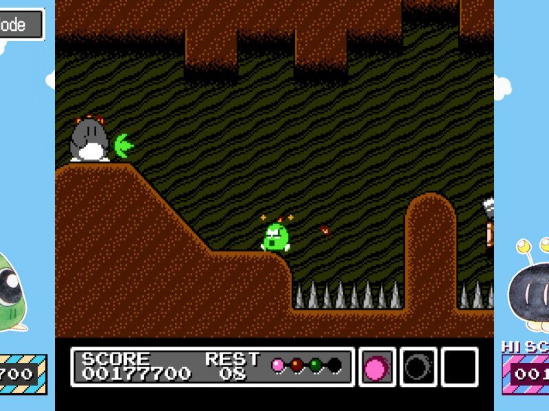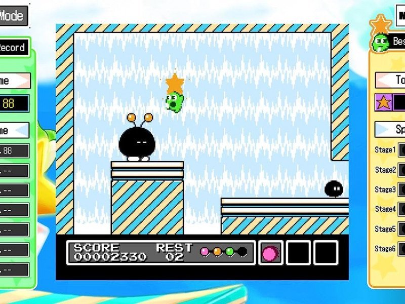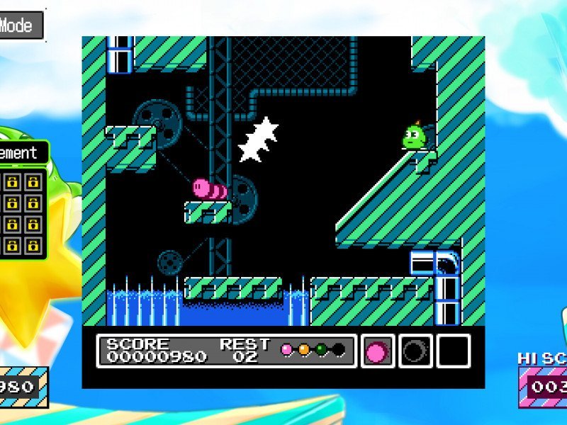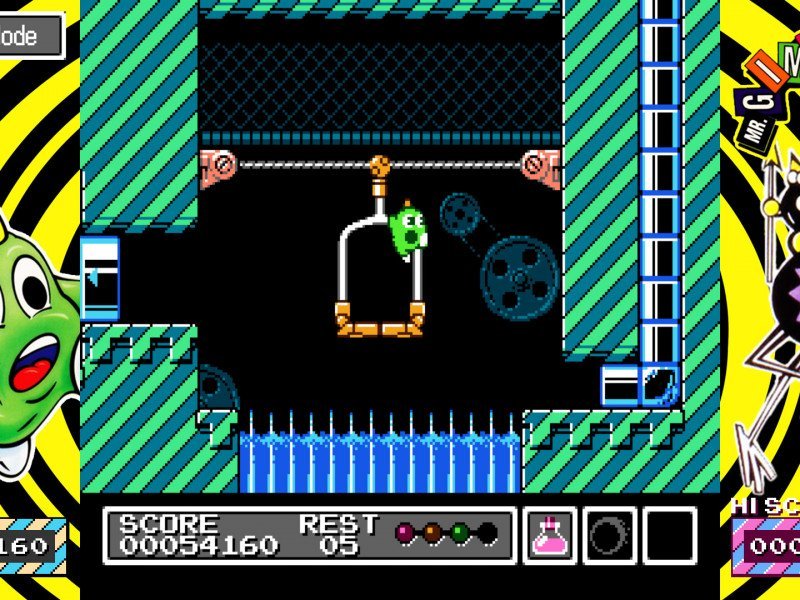 Sunsoft n'est peut-être pas aussi célèbre que Konami au sein de la " nouvelle garde ", mais pour les joueurs de l'ère NES, c'est une institution. Tout le monde se souvient du design époustouflant de Batman et des prouesses techniques de Batman : Return of the Joker. M. Gimmick, lui, reste à ce jour un petit bijou méconnu, doté d'un moteur physique étonnamment avancé pour une console 8 bits. Ce fut l'un des derniers jeux vidéo sortis sur la Nintendo Entertainment System. Arrivé en Europe au milieu de l'année 1993 grâce à la société suédoise Bergsala, son succès est malheureusement resté confiné au Japon, compte tenu du faible tirage en Scandinavie. Compte tenu de sa beauté et de son caractère unique, c'est bien dommage, et à ce jour, seule l'émulation a permis aux nouvelles générations de joueurs de s'y essayer. L'édition spéciale de Gimmick ! Special Edition vise à recréer à peu près le même ensemble de jeux avec une touche plus moderne, en apportant des modifications essentielles pour que même les plus jeunes puissent profiter de l'aventure de l'adorable petite créature verte. Mr. Gimmick raconte l'histoire de Yumetaro, un être offert par erreur comme jouet à une petite fille. La petite créature doit entreprendre un voyage court mais intense à travers les déserts, les mers et les montagnes pour la sauver, après que d'autres jouets ont pris vie et l'ont emmenée dans une autre dimension. Explorant de nombreux endroits, Yumetaro devra ramener sa maîtresse bien-aimée dans le monde réel, en vainquant une série de créatures redoutables. L'histoire est presque omise dans l'édition spéciale. Quelques indices sont visibles dans l'artwork qui entoure l'écran de jeu, ou dans les scans des manuels japonais et suédois exposés dans une section nostalgie ad hoc. Ce qui pourrait sembler être une petite affaire sympathique pour les plus petits cache cependant un degré de difficulté considérable, plutôt discordant avec l'apparence inoffensive de M. Gimmick.