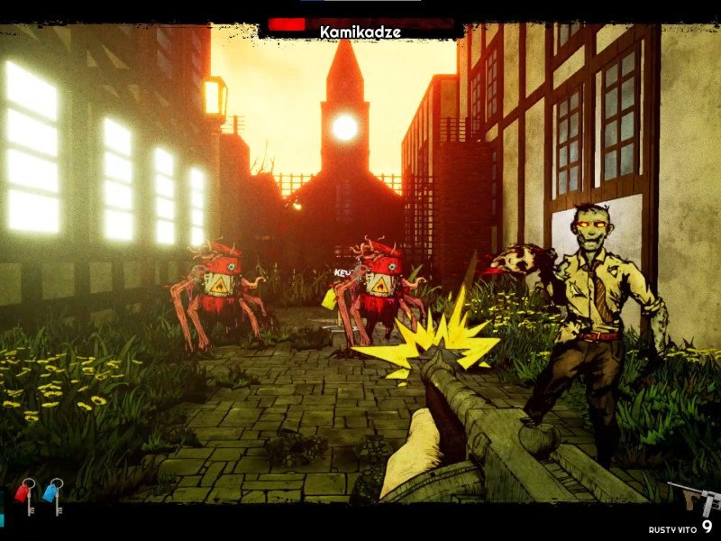 La pièce maîtresse de « Forgive Me Father » est le style artistique. Les graphismes en cel-shaded sont un soulagement à regarder. Une grande attention a été portée aux environnements. Cela vous emmène dans de grands châteaux, des villages densément peuplés, des ports, des environnements boisés et une mystérieuse dimension extraterrestre. Chacun est magnifiquement conçu, rempli d'objets et d'ennemis adaptés au type de niveau dans lequel vous jouez. Les ennemis sont variés et représentés grâce à des sprites plats, et ils semblent tout droit sortis d'une bande dessinée. Par exemple, nous nous sommes battus contre des villageois ressemblant à des zombies, des tentacules, des monstruosités volantes et des boss gigantesques. Les ennemis se présentent en groupes de plus en plus grands à mesure que le jeu progresse, et il est très important que vous fassiez bon usage de votre arsenal d'armes. Ces armes que vous pouvez obtenir sont celles auxquelles on peut s'attendre dans un jeu de tir classique. Nous sommes arrivés sur les lieux avec un pistolet, une mitraillette, un lance-roquettes et une arme à énergie. Pas très original, mais efficace, et chacun semblait agréable et puissante.