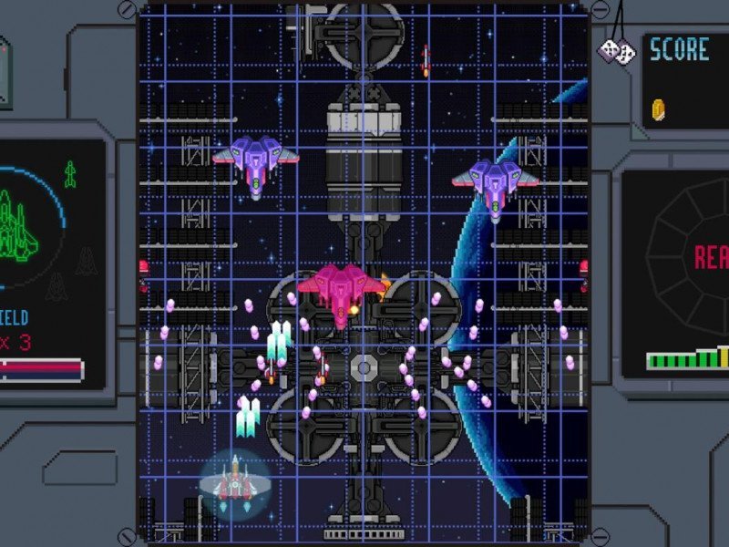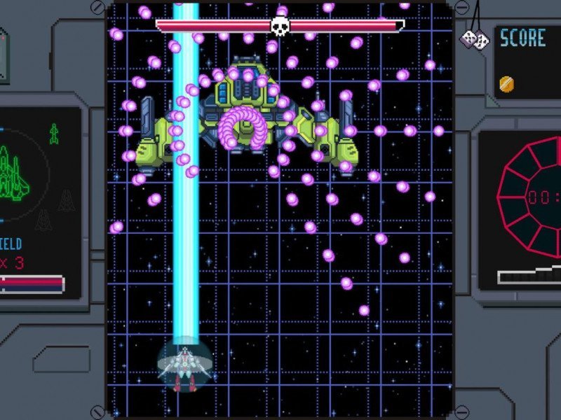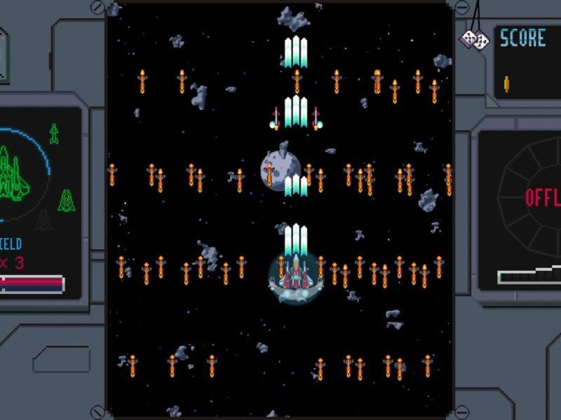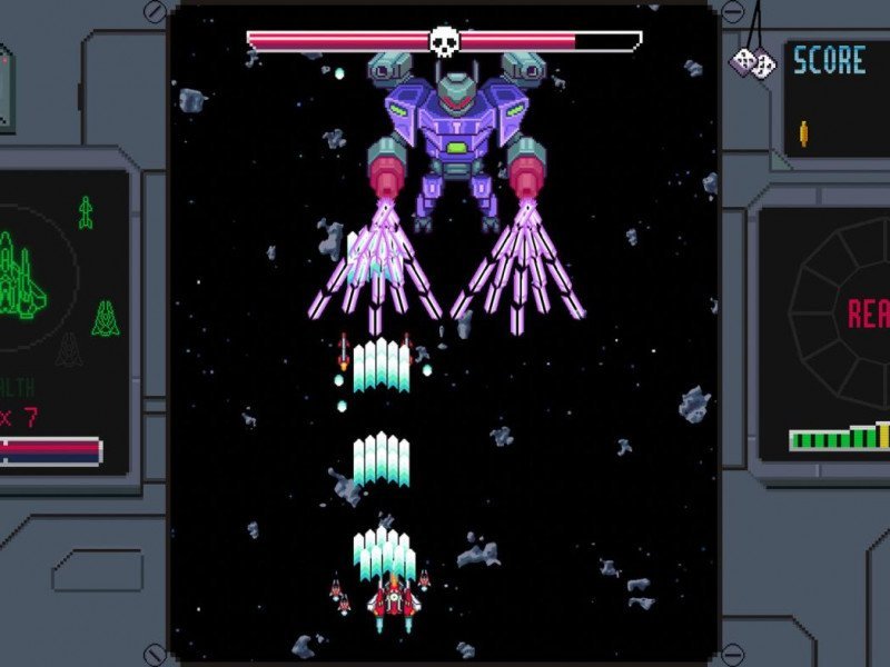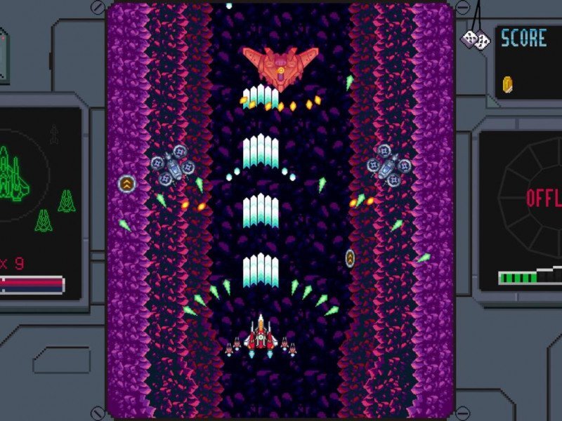 Le vaisseau a une barre de santé et il est possible de trouver des boucliers sur les ennemis vaincus, il n'y a qu'une seule vie disponible. Mourez et vous êtes de retour au niveau 1. Les améliorations de capacités achetées sont permanentes mais il existe une option étrange à acheter – 2x or - lors de la prochaine exécution. Cependant, cet élément facultatif doit être racheté à chaque fois et doit essentiellement être acquis si vous souhaitez réduire l'achat de nouvelles mises à niveau. Après avoir dépensé notre argent durement gagné pour cette mise à niveau unique 2x, nous avons décidé de revenir au menu principal quelques minutes après avoir joué à la première étape pour ajuster les options car elles ne sont pas accessibles pendant le jeu. Cela a injustement brûlé notre achat de mise à niveau 2x, ce qui était ennuyeux. De plus, il faut dire que ce jeu est bruyant. C'est pourquoi nous avions besoin de revenir aux options ; le son est inconfortablement fort. Bien que le gameplay soit fluide, sans aucun ralentissement, il est étrange que le vaisseau du joueur soit verrouillé sur les quatre directions principales. Ne pas pouvoir utiliser le stick analogique pour se déplacer dans n'importe quelle direction est limitant et rend également le jeu un peu plus difficile. Après avoir joué pendant un moment, nous nous sommes habitués aux commandes, mais c'est juste un peu bizarre pour un jeu de tir.