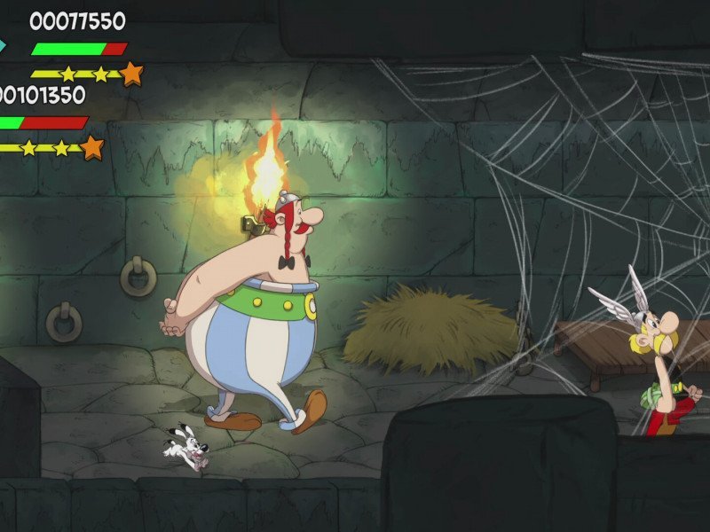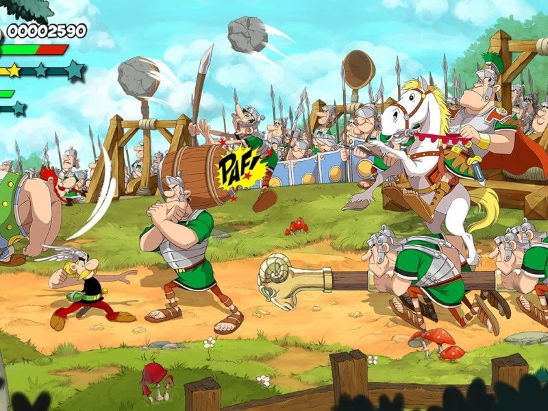 Par rapport au titre original, Astérix & Obélix : Baffez-les Tous ! 2 propose également deux nouvelles mécaniques, à savoir un coup final exploitable une fois la barre appropriée complètement chargée, qui frappera et dévastera tous les ennemis à l'écran, et la possibilité de lancer des coups chargés , adaptés pour interrompre la garde ennemie. Nous aurons alors les tirs normaux classiques, les tirs spéciaux, le bouton pour ramasser et lancer les ennemis et la nourriture, sauter et garder. C'est tout. Des commandes qui seront d'emblée incroyablement simples et intuitives , et qui suffiront à dévaster les hordes ennemies à l'écran. De plus, d'une simple pression sur un bouton, nous pourrions faire la distinction entre Astérix et Obélix si nous jouons en mode solo. Mais alors qu’est-ce qui ne nous a pas convaincu dans "Baffez-les Tous ! 2" ? Malheureusement nous sommes confrontés à un gameplay qui reste identique pendant toute la durée du jeu , mais laissez-moi mieux vous expliquer. Ce n'est pas un problème que le titre soit un jeu de combat à défilement, mais la profondeur du système de combat est vraiment réduite au minimum. Nous ne débloquerons pas d'autres combinaisons de tirs, de coups spéciaux, de capacités ou autre, mais nous continuerons pendant toute la durée du jeu avec le même arsenal de tirs , peu nombreux, mais suffisants pour vaincre tous les ennemis sans trop de difficulté. Ce choix pénalise pas mal un titre qui, avec un peu plus de profondeur, aurait réellement bénéficié d'une profondeur différente, et ruine en partie le bien qu'il parvient à offrir. Cependant, l'excellente variété de niveaux, un gameplay somme toute divertissant , les trois niveaux de difficulté et la possibilité de coopération locale sont autant de points positifs pour Baffez-les Tous ! 2 ce qui augmente la rejouabilité du titre.
