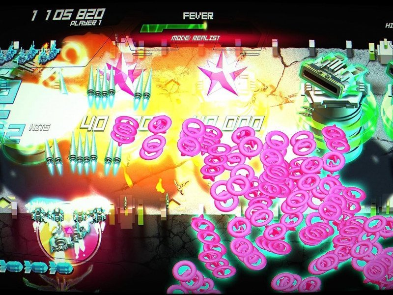 Le gameplay de Shinorubi nécessite beaucoup d'attention, toute concentrée sur l'esquive de la cascade de balles qui nous arriveront à chaque étape. Pourtant, le seul effort réel demandé au joueur se limite à cela ; esquivez et maintenez X pour tirer en rafale. D'autres bullet hell rendent souvent les jeux plus excitants avec des améliorations, telles que des power-ups destructeurs ou de défense, et à la place, Shinorubi se limite aux médailles à collecter pour gonfler le score et aux bombes limitées typiques à larguer en cas de difficultés sérieuses. Et vu la portée et les arcs d'attaque de tous les vaisseaux, pour le moins disproportionnés et exagérés, il suffira juste de faire attention à ce que votre hitbox (littéralement un cube dix fois plus petit que notre propre vaisseau) évite d'entrer en contact avec un projectile. ennemi et en attendant, devenez fou avec le tir automatique. Shinorubi tente effectivement de stimuler les joueurs en proposant un second mode de tir, mais sans succès. Le moyen serait de maintenir enfoncé le bouton Carré pour diriger tous les lasers sur un seul point, ce qui augmente très légèrement le montant des dégâts et qui, en revanche, ralentit considérablement les mouvements du navire. Frapper un certain nombre de fois avec ce focus remplira la barre de Fièvre, qui confère cependant un léger pouvoir pouvant faire des dégâts pendant quelques secondes ; un jeu qui n'en vaut pas la chandelle. Le jeu tente également avec des variantes du jeu principal et avec quelques modificateurs, comme le joli mode Pink Pigs, mais pas de quoi bouleverser la qualité du titre .