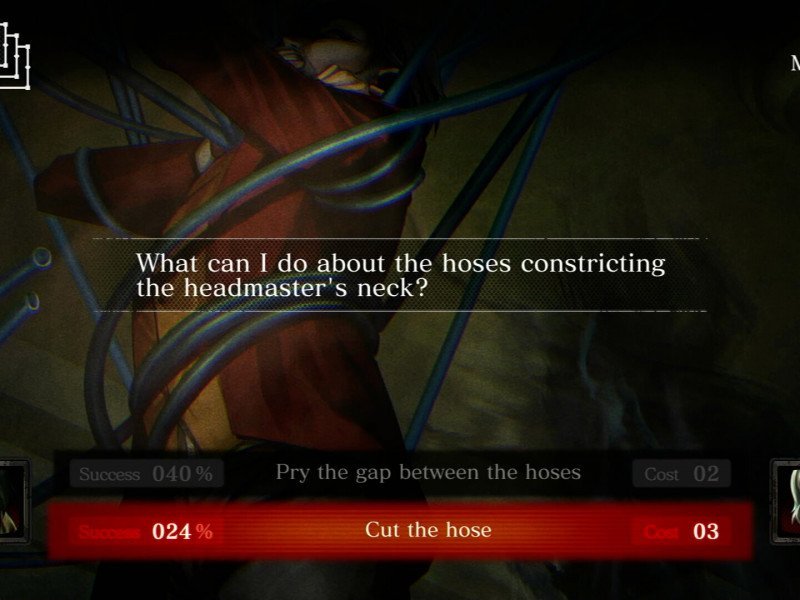 La série Spirit Hunter consiste à affronter des esprits dans des combats au tour par tour, mais les actions sont en réalité un casse-tête. En pratique, ce que nous devons faire est simplement de découvrir la bonne frappe pour procéder. Il n'y a qu'une illusion de choix et l'idée est de tester si le joueur a vraiment prêté attention à ce qu'il a réussi à découvrir tout au long de l'enquête sur l'affaire. Dans Death Mark II, nous avons ajouté un mécanisme qui n'interfère que négativement avec le processus : le facteur chance. Alors que dans les jeux précédents, il suffisait de découvrir la bonne action pour avancer, dans le troisième titre de la série, chaque option de combat (à la fois fausse et bonne) a une « chance de fonctionner ». Le joueur peut choisir correctement quoi faire et ne pas le faire, perdant de l'énergie et même mourant prématurément. De plus, le fait que vous puissiez exécuter n'importe laquelle des autres options ne signifie rien car elles sont fausses et obligeront seulement le joueur à réessayer. Au lieu de décourager les essais et les erreurs, ce système ne fait que rendre l’ensemble du processus encore plus frustrant. Pire encore, la structure est également devenue plus linéaire qu’auparavant. Dans le premier Death Mark et dans Spirit Hunter : NG, les batailles finales de chaque chapitre impliquaient un choix : utiliser les objets qui élimineront les esprits ou ceux qui résoudront vos problèmes après la mort ? Le premier a également fait l'affaire, mais a conduit à la mort cruelle de nos alliés et à une mauvaise fin, valorisant le concept de compréhension de la véritable cause des malédictions, même face à l'adversité. Dans le troisième jeu, en revanche, nous n'avons qu'une seule façon d'affronter les esprits. Une fois la bataille terminée, nous avons des messages très explicites présentant une tâche supplémentaire à accomplir pour sauver ces esprits. En conséquence, nous avons perdu la flexibilité et la valeur beaucoup plus intéressante qui existaient dans les combats précédents.