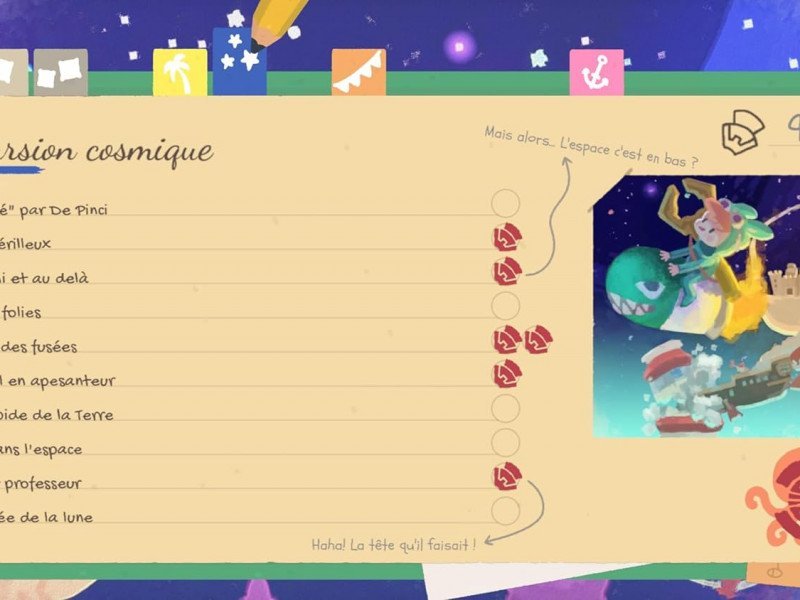 Bien qu’il s’agisse d’un jeu vu à travers les yeux d’un enfant et que même cette forme a tendance à cibler un public plus jeune, les personnes plus âgées ne devraient pas l’ignorer complètement. Certains défis peuvent relever la barre, et c'est loin d'être un jeu qui se passera de lui-même. Tout est raisonnable, mais chaque étage est de plus en plus exigeant, ce qui signifie une exploration de plus en plus difficile. Il faut également considérer que le titre est très permissif, en cas d'échec, Nemo tombera tout simplement dans un hamac. Durant les stages, il y a des livres sur les cartes qui contiennent une liste complète des objets à collectionner dans un niveau donné, et nous avons été surpris qu'ils ne soient pas plus facilement accessibles. Bien qu'ils contiennent souvent une allusion claire à une quête dans le nom (c'est peut-être pour cela qu'ils ont limité notre aperçu), il est bon de savoir que vous avez tout récupéré et qu'il ne sert à rien d'explorer davantage un niveau donné. D'une part, c'est un indice, et d'autre part, c'est un moteur pour ceux qui ne se contentent pas du montant minimum et veulent tout voir. Bien sûr, outre les sauts, les défis et les énigmes, il y a aussi des boss. Exact, parfois ils ont un schéma différent, mais bref, le combat est basé sur le lancement d'ennemis/objets capturés et est plutôt un élément ajouté par nécessité. On pourrait facilement imaginer Promenade sans eux, ils ne sont pas vraiment essentiels au succès.