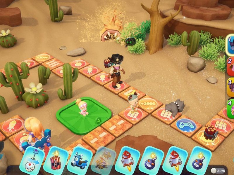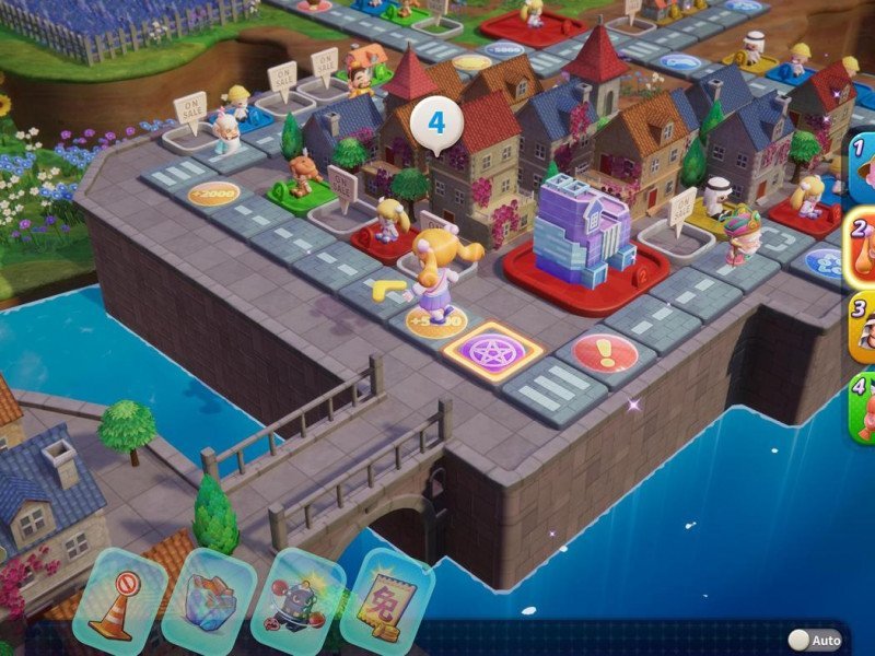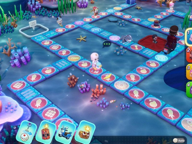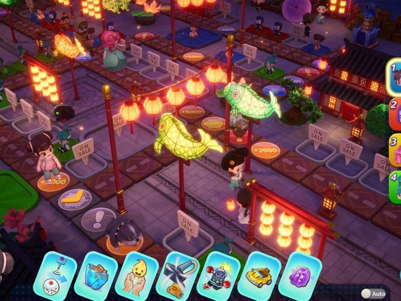 Les pièces de jeu sont divisées en deux parties : les pièces utilisables et les pièces de banque . Les plus utilisables, évidemment, sont ceux que vous pouvez investir directement pour acheter un terrain, améliorer vos maisons pour augmenter le loyer ou acheter de nouvelles cartes ou des bonus temporaires. Ceux en banque, cependant, sont l'argent collecté grâce au loyer ou aux pénalités infligées aux autres utilisateurs ou aux victoires dans des mini-jeux ou, encore une fois, au tirage au sort de la loterie ou à des événements spécifiques sur le plateau actuel. Pour utiliser l’argent en banque, vous devrez atterrir sur une case dédiée à la banque et procéder au retrait. Mais comment se déplacer dans Richman 11 ? Connaissez-vous le Jeu de l'Oie et le Mario Party susmentionné ? Lancez un dé . Cela confirme que Richman 11, plus qu'un titre stratégique, est un véritable jeu casual puisqu'un mauvais coup peut rapidement et cruellement vous envoyer au bord de la faillite. Les zones de jeu de Richman 11 regorgent d'effets et d'événements de toutes sortes qui rendent chaque course pratiquement unique, surtout lorsqu'on les ajoute aux effets des différentes cartes qui peuvent être utilisées par les utilisateurs dans la course. Les cases principales sur lesquelles vous atterrirez sont celles liées à la terre. Chaque terrain peut être acheté et, une fois la négociation terminée, cet endroit sera le vôtre (sauf utilisation de cartes ou modifications liées à des événements ou pénalités de diverses natures). L'achat d'un terrain est essentiel car, si un autre joueur atterrit sur un espace que vous avez acheté, il devra vous payer une taxe, perdant de l'argent et vous faisant gagner. De plus, si vous atterrissez sur un espace que vous avez déjà acheté précédemment, vous pourrez investir de l'argent supplémentaire pour augmenter son prestige et donc aussi l'impôt à payer par vos adversaires.
