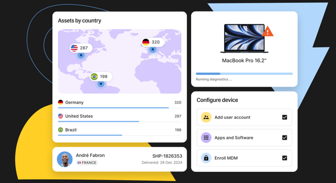 Deel IT réduit la charge des équipes IT et RH en intégrant les systèmes internes et en automatisant les tâches telles que le provisionnement, le suivi et la maintenance. Cela laisse de la place à la prise d’initiatives stratégiques, réduit le temps consacré à l’onboarding manuel et permet aux équipes de gérer efficacement le stock tout au long du cycle de vie du travailleur.