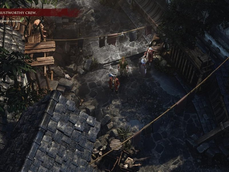 Certes, le genre pirate peut sembler assez négligé par l’industrie du jeu vidéo depuis des années. À quelques exceptions près, la plupart des tentatives n'ont pas abouti, Sea of Thieves de Rare étant de loin l'expérience de pirate la plus authentique que nous ayons vue. Flint : Treasure of Oblivion est la tentative de Savage Level de proposer une histoire originale aux vagabonds des sept mers. En fait, il a recruté plusieurs pirates notoires pour y parvenir. Au centre de tout cela se trouve évidemment James Flint, un personnage que nous avons rencontré à plusieurs reprises dans divers médias. Du roman acclamé Treasure Island à l'étonnante série télévisée Black Sails, le capitaine est désormais l'une des figures les plus reconnaissables du genre pirate. Notre jeu commence avec Flint et son bras droit, Billy Bones, naufragés et secourus par un autre navire qui, à la première escale, les amène en prison. Là, nos protagonistes apprennent l'existence d'un trésor légendaire, ils s'échappent et commencent à recruter un vaste équipage à la recherche du butin. L'équipage est composé de nombreux marins de second ordre, ainsi que de pirates célèbres comme Mary Read et Anne Bonny. En fait, chaque membre de l’équipage est pleinement utilisable, comme nous l’analyserons ensuite. Disons ici que le jeu se développe dans une perspective isométrique, l'histoire se déroulant principalement à travers des panneaux bien conçus, que l'on retrouverait dans une bande dessinée. Les cinématiques traditionnelles font des apparitions très sporadiques et ne constituent à aucun moment un dispositif narratif clé. Les visuels choisis pour les panneaux sont vraiment beaux et tout à fait en adéquation avec le style général du jeu, qui a souvent un caractère plus comique. À partir de là, le jeu se déroule dans une variété d'endroits, depuis le pont d'un navire et les cachots de prison, jusqu'aux villes densément peuplées, et tous sont conçus avec soin, les personnages humains ayant une texture cel-shading appropriée, de sorte que ils se démarquent de l'environnement.