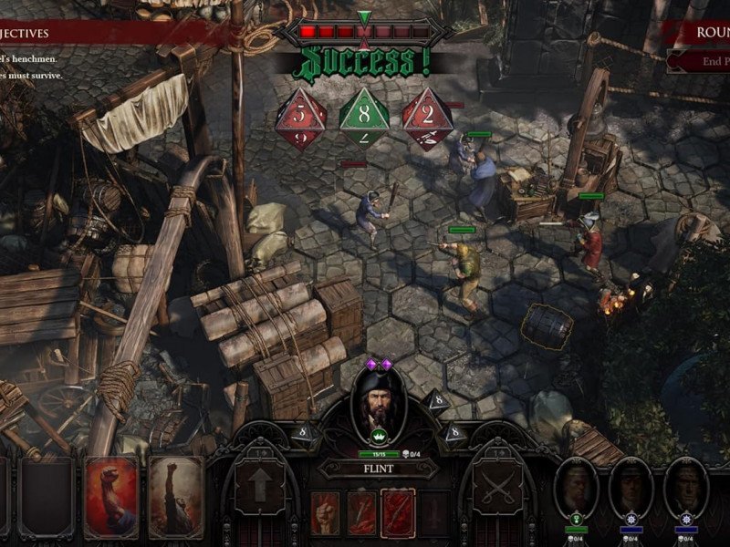 Pour la fin nous avons laissé la partie la plus chronophage de l'expérience, qui n'est autre que la bataille. Le combat au tour par tour du titre est complété par un système de dés, comme dans un autre jeu de société. Bien qu'il n'y ait pas suffisamment d'indications sur le moment où les chances de lancer un bon jet augmentent, le système fonctionne la plupart du temps, et nous pouvons également améliorer la capacité de chaque pirate à lancer un bon jet, ce que nous avons également appris tardivement, car ce n'est jamais le cas. expliqué. Chaque pirate peut se déplacer dans l'espace, comme s'il effectuait des mouvements sur un échiquier, puis attaquer avec l'équipement que nous lui avons attribué. Les ennemis, quant à eux, ne font preuve d'aucune pitié et nous avons vu le jeu à l'écran à plusieurs reprises. La bonne approche stratégique est la clé de voûte de nos efforts, et nos choix au cours de la bataille sont cruciaux. Bien sûr, tout n’est pas rose, car il y a des enjeux importants dans la bataille. Tout d'abord, la prise en main n'est pas idéale, ce qui est probablement dû au mappage du contrôleur, le jeu semblant avoir été conçu principalement pour PC, comme en témoigne l'étrange combinaison de touches requise pour certaines actions. Passer d’un personnage à l’autre est parfois pénible, tandis que choisir la bonne commande semble tout aussi difficile. La situation est compliquée par la caméra, qui ne répond pas toujours aux exigences de l'espace où se déroule la bataille. On voit la caméra « tomber » sur les obstacles, alors qu'elle n'aide pas particulièrement à la bonne perception de la profondeur et ne permet rarement de comprendre exactement où se trouve un adversaire.