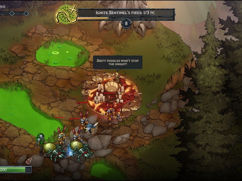 L'intrigue du jeu est très simple, certaines divinités se battent pour un territoire et vous êtes appelé par les Sentinelles pour défendre les terres des divinités envahissantes. Ces sentinelles vous confèrent des capacités pour vaincre vos adversaires, c'est aussi simple que cela. En fait, l'intrigue du jeu est volontairement superficielle, l'accent du jeu est presque à 100 % sur son concept. Le jeu ne cherche pas à réinventer la roue, mais tout ce qu'il fait en termes de gameplay est le bienvenu et s'adresse aux amateurs de roguelites et de bullet hell. Concernant le mouvement, le joueur contrôle son personnage, vu sous un angle symétrique sur la carte, avec le stick analogique gauche et dirige son attaque avec le stick analogique droit, cependant, pour attaquer il doit appuyer sur la gâchette droite ou la maintenir enfoncée (ce que je recommande). Il est également possible d'esquiver avec le tableau de bord. Pendant le match, certaines compétences sont débloquées, et certaines d'entre elles peuvent également être utilisées avec la gâchette gauche. En gros c'est tout, le reste sont des compétences passives et des effets d'attaque qui sont acquis tout au long du match. Le joueur commence chaque étape « réinitialisée » avec seulement son arme initiale, et tout au long de l'étape, alors qu'il bat les hordes d'ennemis qui arrivent par vagues, certains portails sont libérés et lui accordent des améliorations au sein de ce match qui vont d'une plus grande vitesse d'attaque et des effets tels que les ennemis qui explosent lorsqu'ils meurent jusqu'à même laisser une traînée empoisonnée partout où il va et faire en sorte que le tiret cause des dégâts aux ennemis. Il existe une large gamme d'améliorations, mais comme tout bon roguelite, elles ne durent que jusqu'à la fin du jeu.