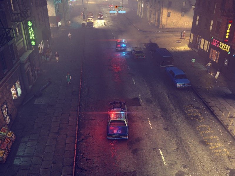 Sur le plan artistique, la vue isométrique de haut en bas (qui peut être légèrement inclinée) transforme Averno City en un décor de cinéma miniature, où chaque rue, ruelle et lampadaire semblent sortir directement d'une cassette VHS oubliée. Les lumières douces, la pluie constante et les enseignes au néon créent un décor noir évocateur, capable d'évoquer des atmosphères à la Blade Runner, tout en gardant les pieds fermement ancrés dans l'esthétique des années 80. La ville n'est pas gigantesque, mais elle est dense et bien construite. Chaque quartier a sa propre identité : du centre-ville rempli de gratte-ciels et de circulation, aux banlieues désertes et dangereuses , en passant par les zones industrielles et les zones portuaires. Avernus n’est pas seulement un décor : il est vivant, rempli de PNJ avec des routines dynamiques, de criminels en interaction et d’un centre d’opérations qui réagit à chacune de nos interventions. Techniquement, le jeu présente quelques problèmes, notamment des bugs, des problèmes techniques et des ralentissements pendant les poursuites. Bien qu'un patch de pré-lancement ait corrigé certains problèmes, des problèmes de collision et de fluidité générale persistent.
