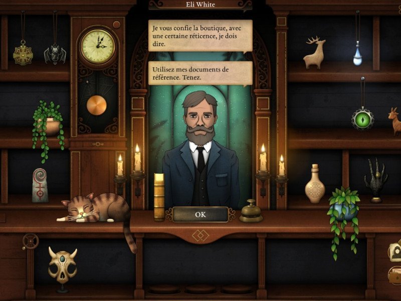 Développé par Bad Viking et édité par Iceberg Interactive, Strange Antiquities est un nouveau titre qui suit le même fil narratif que Strange Horticulture, mais n'en est pas une véritable suite. Strange Antiquities se veut un nouveau jeu et propose une nouvelle histoire, tout en conservant un lien avec Strange Horticulture, dont il partage le même univers. Le jeu se déroule lui aussi dans la ville d' Undermere et nous permettra de retrouver des visages familiers. Dans Strange Antiquities, nous sommes chargés de gérer la boutique du même nom. En tant qu'apprentis, nous incarnerons Eli White, le propriétaire de la boutique d'antiquités dont nous sommes chargés. Comme dans Strange Horticulture, dont les mécanismes sont empruntés, notre travail quotidien consistera à accueillir les clients et à répondre à leurs demandes . En tant qu'apprentis, nous avons cependant beaucoup à apprendre et devrons relever le défi d' identifier correctement les objets uniques qui peuplent les rayons de la boutique, ainsi que d'élargir notre collection. Le cœur du jeu s'articule autour de deux éléments principaux : l'identification des objets et l'exploration . D'une part, nous avons l'identification des objets. Pour mener à bien cette tâche, nous devrons examiner les artefacts et les reconnaître grâce aux descriptions figurant dans les volumes disponibles. Chaque objet possède des caractéristiques uniques, notamment le matériel; le poids (nous avons une balance pour comprendre le poids) ; la présence de symboles ou de gemmes (avec la signification correspondante que nous pouvons découvrir en consultant deux autres volumes distincts) ; mais aussi des bruits ou des sensations tactiles et émotionnelles liées à l'objet lui-même.