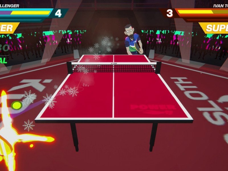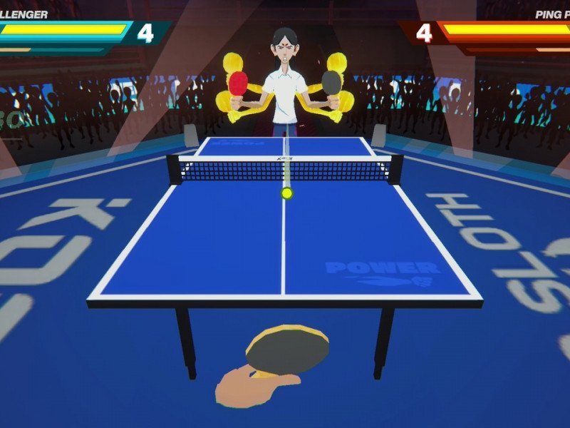 Développé par Suspicious Jam, King of Ping Pong: MEGAMIX est un jeu de ping-pong original qui utilise la vue à la première personne pour proposer une série de défis 3D légers. Vous vous souvenez de Punch Out ? Eh bien, King of Ping Pong: MEGAMIX en est le reflet, sauf qu'au lieu de boxer, on y joue au ping-pong. En résumé, le titre propose une série de tournois de difficulté croissante où nos adversaires se distinguent. Ils constituent d'ailleurs l'élément le plus soigné du jeu et, bien que potentiellement discrets, ils se distinguent par leur esthétique et leur talent. De plus, ils ont des « pouvoirs » alors que nous… n'en avons pas. Ou plutôt, nos possibilités sont considérablement réduites par rapport à eux, et c'est tout l'intérêt du défi arcade du jeu . Hormis la voix répétitive du présentateur et les biographies courtes et fugaces de nos adversaires uniques, King of Ping Pong: MEGAMIX ne propose aucune narration. Et c'est un peu dommage, car les joueurs auraient pu donner plus de vie aux combats, rendant les combats plus palpitants. En l'état actuel des choses, le titre brille uniquement par son style et le caractère unique des ennemis , malheureusement en nombre limité : cinq . Eh oui, il n'y en a que cinq, et malgré plusieurs tournois disponibles, les adversaires seront toujours les mêmes, avec une difficulté croissante. Et en parlant de difficulté , sachez que King of Ping Pong: MEGAMIX ne lésine pas sur les moyens. C'est un jeu d'arcade à l'ancienne, résolument stimulant, qui exige une réflexion rapide et une précision extrême, ainsi qu'une adaptation rapide à la physique imprévisible du jeu. Inutile de préciser que, comme nous le verrons dans la section suivante, les ennemis que nous affronterons se démarquent une fois de plus du reste du jeu, offrant une bonne variété de gameplay !