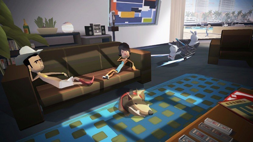 Dans ce quatrième volet des Lapins Crétins, le concept a totalement changé puisque vous contrôlez cette fois ls terrifiants lapins, dans un jeu d'action/aventure. Les Lapins ont en effet décide rentrer chez eux, et ils sont persuadés que la Lune est leur véritable maison. Pour gagner le ciel, les Lapins décident donc d'ériger une gigantesque tour pour grimper sur le satellite de la Terre, ce qui va les conduire à réaliser des épreuves assez crétines. Contrôlant deux lapins et leur chariot de supermarché, votre objectif sera de récupérer des objets, tout en terrorisant les humains en effectuant des courses poursuites infernales. Décomplexés, les Humains ont cependant décidé de se révolter et ont lancé des Verminators pour stopper la progression des Lapins Crétins. L'ambiance est assez dingue, avec des personnages déjantés, des déguisement pastichant certains personnages d'Ubi soft. Les lieux rencontrés ne manquent pas de renouvellement et vous aurez le plaisir de piloter votre chariot tout en accélérant, sautant, glissant, flottant ou encore en volant. Car le cadi est personnalisable (!), tout comme le Lapin.