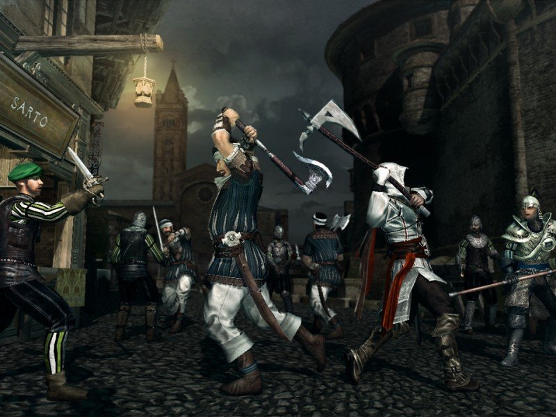 Exit la Terre Sainte et les années 1100. Assassin's Creed 2 prend place cette fois au coeur de la Renaissance Italienne. Nous y incarnons un autre ancêtre de Desmond Miles, Ezio Auditore, un jeune homme assez assez étonnant. En effet, lorsque la partie débute, Ezio n'est absolument pas un assassin de talent, mais plutôt un coureur de jupons. Sous l'effet d'une terrifiante conspiration, et animé par a soif de vengeance), Ezio va se transformer en tueur, dont on pourra découvrir tous les mouvements grâce à un long tutoriel scénarisé, posant les bases de l'aventure. Afin de mettre un terme aux hostilités, le personnage s'attaquera à l'ennemi et comme le Prince de Perse en son temps, il devra éviter les mécanismes piègeux qui traînent dans les niveaux, se montrer discret pour éviter les gardes, et également résoudre quelques énigmes pour débloquer la route. Il faut donc utiliser son environnement pour progresser dans l'aventure et en priorité trouver le lieu d'observation de votre prochaine mission.