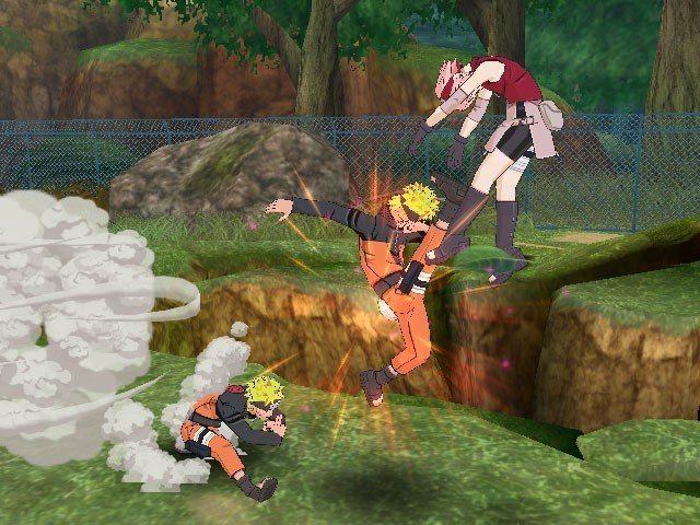 Développé par Eighting (Bloody Roar), Naruto bénéficie d'une jouabilité extrêmement simple et nerveuse. D'aucuns diront que c'est parfois assez confus à l'écran (quatre personnages pouvant s'affronter simultanément), mais le jeu est vivant et punchy, ce qui constitue l'essentiel. Si vous aviez joué aux précédents épisodes (GC ou Wii), vous retrouverez vite vos marques, surtout que cette édition Wii propose d'utiliser une manette GC ou un pad classique. En mode VS, jusqu’à quatre joueurs peuvent se mesurer les uns aux autres. Les personnages peuvent effectuer des attaques spéciales appelées Jutsu, quoique ces attaques flamboyantes sur le plan visuel épuisent votre « chakramètre », de sorte que vous devrez les équilibrer avec des attaques standard. Naruto vous permet également d’ajouter aux rixes des ennemis contrôlés par ordinateur – ils sont parfaits pour les ninjas désireux de tester leurs capacités face à trois personnages contrôlés par ordinateur.