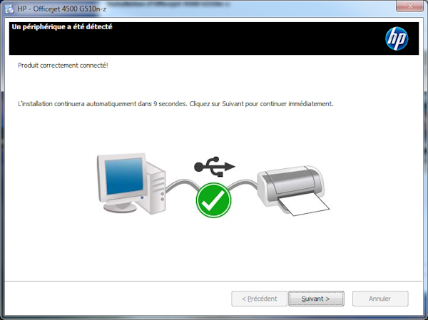 Le processus d'installation se déroule sans encombre sous Windows 7, il est disponible en plusieurs langues et prévient pour les non initiés que pendant l'installation ils ont intérêt à accepter les drivers HP sinon que ça ira moins bien. Bon, on est bien en mode "idiot proof" et pour une imprimante grand public comme ça c'est logique.