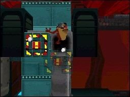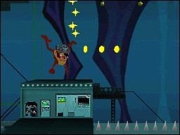 Développé par Wayforward, Galactic Taz Ball est un jeu de plate-formes en vue aérienne. Après un petit tutoriel vous expliquant les commandes, nous sommes donc lancés dans la partie, et contrôlons le célèbre Taz, le diable de Tasmanie. Il devra mettre la main sur des symboles bleus pour espérer regagner la terre ferme. Pendant qu'il faisait la sieste, Marvin le martien a en effet littéralement arrachée une partie de la planète, et chaque niveau se passe ainsi au dessus du vide. Difficile d'ailleurs de ne pas tomber puisque la jouabilité est imprécise au possible ! Les développeurs ont essayé de reprendre un système à la Super Mario 64 DS et donc un déplacement du personnage via l'écran tactile. Mais dans Galactic Taz Ball, cela ne marche pas vraiment bien. La maniabilité est difficile, et si on frotte trop fort son écran, Taz se transformera en tornade, ce qui peut être délicat à négocier si vous passez dans un passage étroit. Quelquefois, le jeu vous entraînera sous-terre, dans les installations futuristes de Marvin. Le jeu bascule alors en 2D, et vous ne dirigez plus vraiment Taz directement, mais devez pointer la direction dans laquelle il doit aller, de même qu'actionner en les pointant divers mécanismes (ventilateurs, ressorts, tapis-roulants). Un concept qui ne changera pas au fil des environnements traversés, et le jeu devient rapidement répétitif, seul le décor variant (et encore). Mais si par hasard, vous n'arriviez pas à passer une zone particulière, il sera possible de zapper la séquence en moyennant l'usage d'une vie (il est facile d'en récupérer des dizaines par monde).