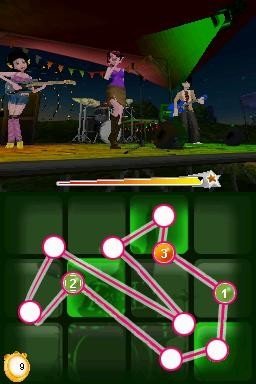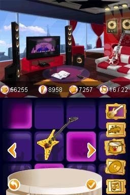 Développé par Artefact Studios (Moto Racer DS), Famous : En Route vers la Gloire vous met dans la peau d'une apprentie rock star. Avant de toucher les étoiles, il vous faudra donc créer un avatar, choisir le nom de votre groupe, puis accéder aux premiers exercices disponibles. Ainsi on alternera cours de chant, de danse, de guitare et de composition dans différents jeux de rythme. Au fur et à mesure, on gagnera des points de talent, tandis que pour augmenter sa popularité, on n'hésitera pas à fréquenter le magasins de vêtements afin de se forger un nouveau look, à acquérir de nouveaux instruments (guitares mais aussi basses ou batteries), à fréquenter le café pour recruter les meilleurs musiciens du moment, puis enfin à se lancer à l'assaut des concerts. Tous les mini-jeux présents sur la cartouche utilisent l'écran tactile, et sont basés sur le rythme. Rien de véritablement compliqué à première vue, si ce n'est qu'il faudra avoir de solides réflexes lorsque la difficulté augmentera. Arrivé dans un concert, vous devrez là encore participer à plusieurs épreuves, non seulement musicales, mais aussi de fan service. Le public vous enverra en effet des récompenses ou des malus. Attention donc à ce que vous réceptionnerez ! Parfois il faudra également lancer quelques cadeaux au public, ou bien applaudir avec eux, avant de passer à l'épreuve de l'interview avec les journalistes. Pas de surprise de ce côté là : plusieurs micros sont affichés, et il faudra suivre l'ordre dans lequel chaque média intervient, en pointant les micros à l'écran.