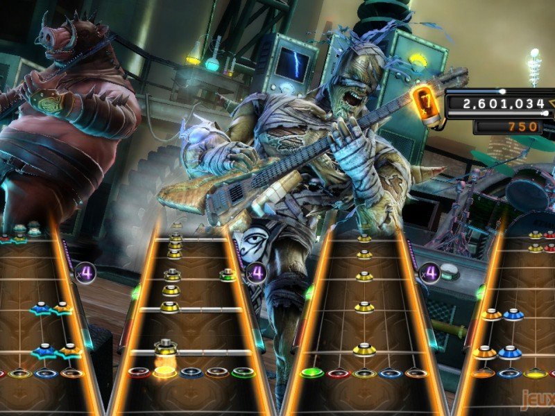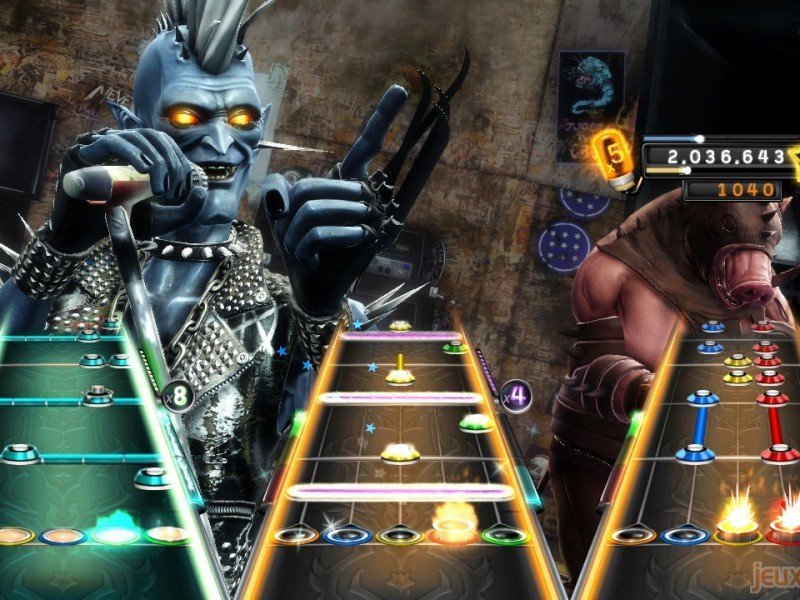 Quelles sont les nouveautés ? La première vient du mode principal qui s'est transformée en une sorte de campagne scénarisée, où les personnages rencontrés semblent issus d'un jeu gothique. Sous la voix de Philippe Manoeuvre, le joueur devra donc suivre la destinée de huit guitaristes aux pouvoirs différents, et qui permettront bien des folies dans les morceaux rencontrés dans ce sixième volet de la série. Par conséquent, votre objectif principal sera toujours de décrocher le plus d'étoiles possibles, avant d'enchainer sur plusieurs morceaux de Rush (issus de l'album 2112) à vive allure. Forcément, cette ambiance dark ne plaira pas à tout le monde, nous sommes loin des couleurs acidulés de certains épisodes.