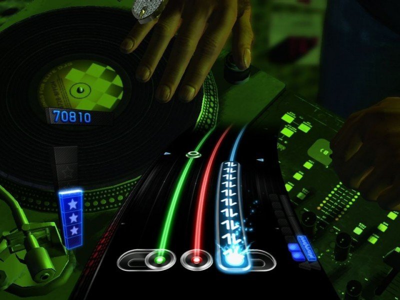 A l'instar de son prédécesseur, DJ Hero 2 est livré avec une platine en plastique, sans fil qu'il sera possible de démonter pour changer l'orientation des touches, la configuration de base étant plutôt délicate pour un gaucher il est vrai. La platine peut naturellement être fixée sur une table, mais même sur ses genoux on arrive à s'en sortir étonnamment bien. Plus concrètement, le tourne disque comporte trois touches de couleurs (une verte, une rouge et une bleue) chacune symbolisant une note. Des boutons sont également proposés de part et d'autre l'appareil, permettant de lancer des effets sonores divers et variés. Il est vrai que vous en aurez besoin pour effectuer des mixages, mais fort heureusement un tutoriel a été implanté. Mais quel est l'objectif précis de DJ Hero ? Jouer une partition en mélangeant deux morceaux. Un exercice plus facile à dire qu'à faire, puisqu'il faudra respecter l'harmonie, tout en suivant les notes apparaissant à l'écran. En enchainant les succès, on pourra déclencher l'euphorie, un effet équivalent au star power de Guitar Hero, et permettant de multiplier les points, ou au contraire vous sauvez de la catastrophe si vous avez perdu le rythme.