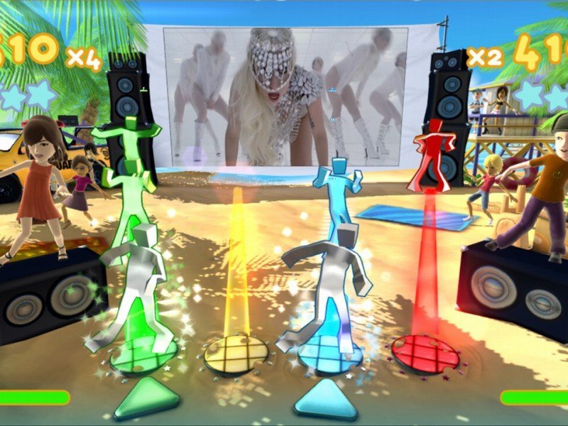 Trois genres semblent dominer actuellement sur le Kinect. Les party-game, les compilations sportives et les jeux de danse. C'est dans ce dernier créneau que Mindscape se lance avec Dance Paradise, un titre assez différent de ses concurrents cependant. Après avoir choisi l'un des 40 morceaux officiels et un niveau de difficulté adéquat (facile, normal ou difficile), votre objectif sera donc de reproduire la chorégraphie qui apparaît à l'écran. Mais contrairement à un Dance Central ou Dance Evolution, le système de jeu rappelle davantage les séries Guitar Hero et Rock Band. Vous retrouverez donc quatre lignes de couleurs à l'écran, et à la place de voir une note apparaître sur la portée, vous verrez donc un mouvement de danse. Votre objectif sera donc de le reproduire fidèlement, avant que la chorégraphie n'atteigne le podium présent au milieu de l'écran. Il faudra donc fréquemment réaliser des pas de côté pour se placer sur la bonne ligne, et cela est assez sportif. Pour vous aider quelque peu, les clips officiels des chansons sont diffusés sur un écran géant en fond d'image. Mieux, un effet de boost pourra être déployé en sautant en l'air, une fois la jauge chargée.