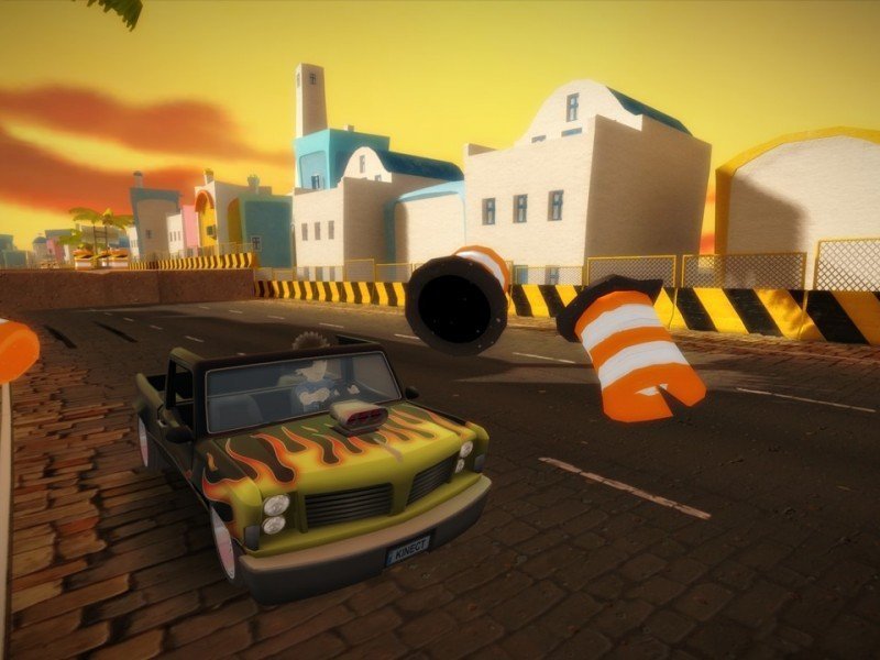 Plutôt cartoon, Kinect Joy Ride offre un rendu visuel assez correct, et un graphisme plutôt chatoyant. Le drame vient plutôt de la jouabilité, qui offre des trajectoires imprécises au possible, et qui n'en fait parfois qu'à sa tête. Il arrive que votre voiture change brutalement de direction, sans que vous n'ayez fait quoi que ce soit. En outre, il faut parfois s'y prendre à plusieurs reprises pour lancer un bonus. Autre problème, la durée de vie du jeu demeure assez light, puisque vous ne retrouvez que sept véritable circuits, une poignée d'arènes, et des voitures dont les seuls changements viennent de l'esthétisme. Certes, le titre contient un mode deux joueurs sur la même console, et un mode en ligne jusqu'à huit, mais le manque de renouvellement du gameplay en viendra vite à bout. N'est pas Mario Kart qui veut. Côté son enfin, on retrouve des musiques plutôt correctes et des bruitages assez honnêtes.