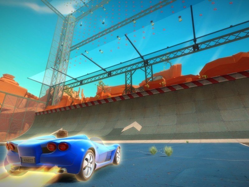 Conçu par le studio Big Park, Joy Ride devait à l'origine être un jeu Xbox Live Arcade, mais au gré de son développement, il a migré en projet Kinect. Kinect Joy Ride est donc un titre de course dans lequel vous dirigez la voiture avec vos mains, comme si vous y teniez un volant virtuel. Assis ou debout, vous devrez donc mimer les gestes pour tourner à droite ou à gauche, et c'est à peu près tout. L'accélération et le freinage sont gérées directement par la console, et la seule commande fantaisiste qui nous reste accessible est le boost (il suffit de ramener ses mains contre soi). En outre, lorsque vous rencontrerez un tremplin, il faudra réaliser soi-même la cascade en gigotant dans tous les sens. Le titre fait preuve d'un grande classicisme dans ses modes de jeux, en reprenant les standards du genre. Course classique, contre-la-montre, course bataille (façon Mario Kart) ou encore le plus original mode Figure (où il faudra prendre les pauses indiquées par le Kinect)