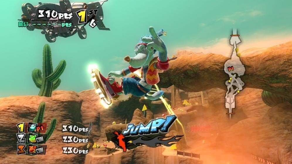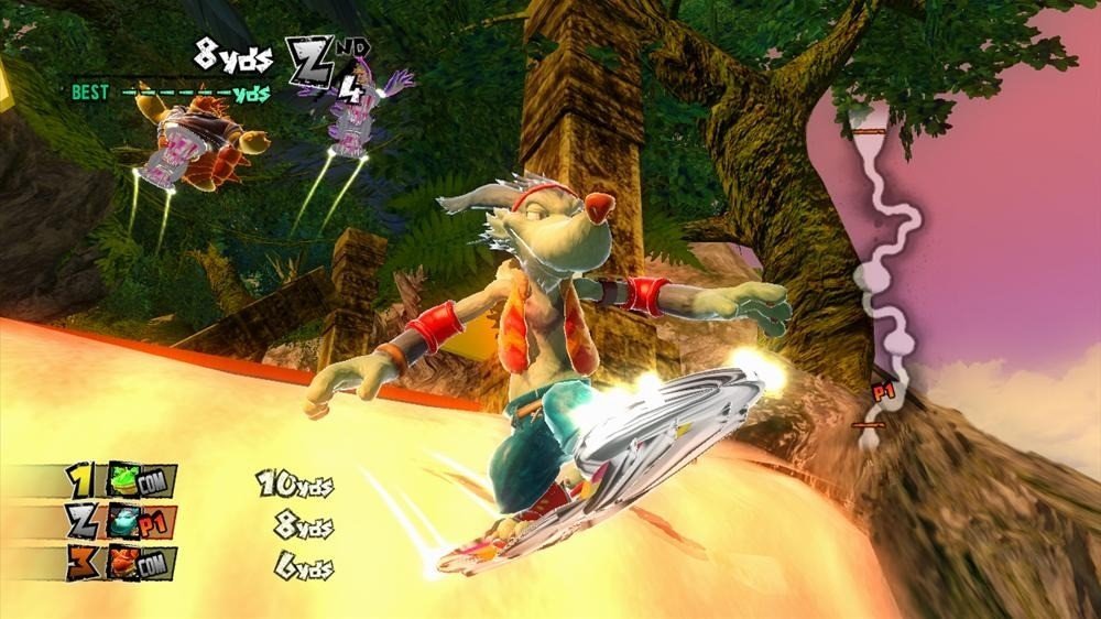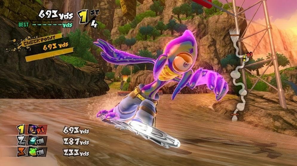 Crossboard 7 est d'ailleurs assez complet, avec des courses simples, des concours de tricks sur rampes, du slalom, de l'éclatement de ballons, ou encore du slalom, mais une fois encore, le manque de sensation se rappelle vite de votre bon souvenir et les épreuves sont très soporifiques. Le comble pour un jeu de course futuriste. Quant au multijoueur, il se pratique uniquement à deux en écran splitté (pas d'online) et la visibilité n'est pas toujours adéquat. Autant dire qu'on risque rapidement de faire le tour de ce jeu, surtout qu'aucun bonus ne sera à débloquer. Mentionnons également des temps de chargements très longs et une bande son assez mauvaise.