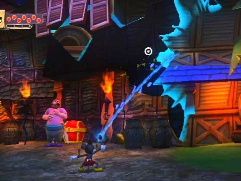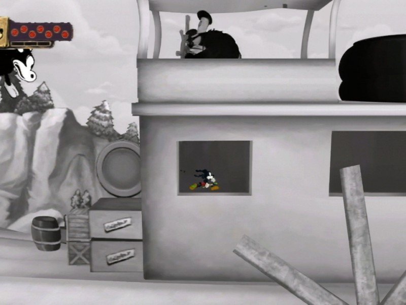 Depuis un épisode GC signé Capcom et pensé pour les enfants (Magical Mirror, 2002), la mascotte de Disney avait disparu des consoles. Pour mieux revenir ? Quoiqu'il en soit Disney Epic Mickey est un titre étonnant à plus d'un titre. Premier point, ce jeu a été créé par Warren Spector, l'emblématique créateur de Deus Ex. Un changement de style profond donc. L'histoire du jeu met en scène Mickey qui, dans le laboratoire du magicien Yen Sid, va découvrir une maquette ressemblant beaucoup à Disneyland. Hélas, la souris va renverser accidentellement une bouteille de dissolvant sur la dite maquette. Quelques années plus tard, un fantôme va venir chercher Mickey pour réparer sa bêtise. La bouteille de dissolvant a en effet créé le Monde de la Désolation, un univers où l'on retrouve tous les personnages de Disney oubliés des enfants (et des grands), avec à leur tête, Oswald le Lapin Chanceux, un personnage qui a connu son succès le siècle dernier, avant que la souris Mortimer n'envahisse les écrans, puis évolue en Mickey.
