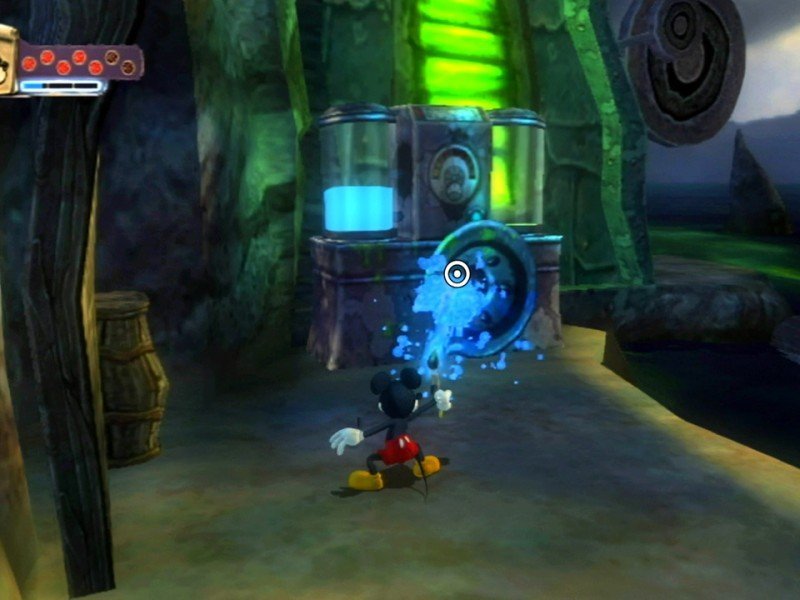 Disney Epic Mickey vous propose donc de manier le pinceau et le dissolvant pour nettoyer des décors ou pour en récréer des nouveaux. Mais attention cependant, les deux produits ne sont pas à usage infinie, et il faudra fréquemment recharger son stock. En outre, il faut savoir que le dissolvant effacera les ennemis de la carte, mais la peinture permettra de les ramener du côté lumineux de la force. La prise en main ne réserve pas de surprise et Disney Epic Mickey opte pour la traditionnelle action/plate-forme qui fonctionne toujours très bien sur Wii. Hélas, la caméra 3D n'est pas toujours très pertinente et rappelle les Sonic Adventure, avec des angles de vue parfois peu inspirés. Plus surprenant, pour passer d'un monde à l'autre, vous découvrirez des bons vieux niveaux en 2D, à l'instar de New Super Mario Bros, l'occasion de redécouvrir certains vieux dessins animés de Mickey.