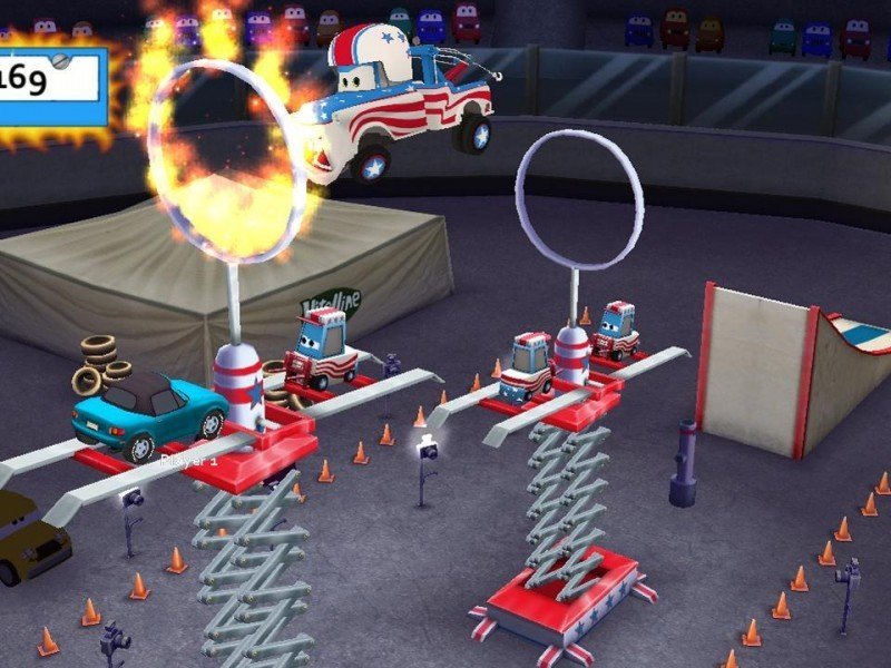 Pour ce premier CARS conçu chez Disney Interactive (les précédents étaient édités par THQ), le concept a pour le moins changé. En effet, il ne s'agit plus d'un jeu de course arcade inspiré des films, mais d'un party game. Développé par Papaya, Cars Toons vous met dans la peau de Martin, qui nous raconte durant dix chapitres ses anciens faits d'armes. Le tout sert à introduire une trentaine de mini-jeux destinés avant tout au jeune public. La progression demeure très encadrée, et le déroulement des épreuves ne varie pas vraiment dans le mode Histoire. Cela sera des petites épreuves de courses, des jeux de mémoires, de la simulation de pompier ou bien de bulldozer. Nonobstant, le titre accuse rapidement ses limites, faute d'une maîtrise technique suffisante. Malgré un rendu cartoon agréable, le graphisme manque singulièrement de finesse, et n'apparaît très flatteuse, même pour un jeu Wii. L'impression de vitesse répond aux abonnés absents, et la jouabilité demeure globalement assez creuse. Non pas que le jeu ne soit pas maniable, mais qu'il s'agit de réaliser encore et encore les mêmes actions (peu variées de surcroit). Si Cars Toon propose des doublages français, on ne peut pas dire que la bande son soit soignée. Au contraire, fréquemment, le volume monte ou descend sans que l'on ne touche pourtant à quoi que ce soit. Quant à la durée de vie, hormis vouloir décrocher les trophées du jeu, il n'y a pas grand chose à faire. Comptez environ cinq heures.