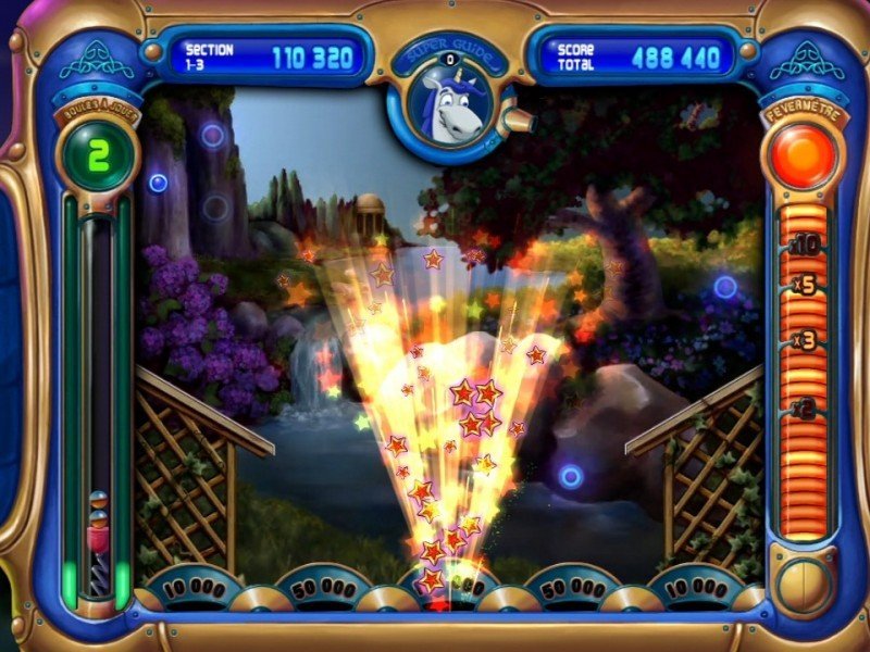 Peggle est une déclinaison du jeu de pachinko, une sorte de machine à sous qui rencontre un grand succès au Japon. Au début de chaque niveau, dix billes sont disponibles dans un canon inclinable. Une fois la direction choisie, vous pouvez lancer une bille qui va rebondir sur les éléments du décor et l'objectif est d'éliminer tous les taquets disponibles. On en compte quatre modèles différents. Les oranges sont les plus importants et il faut tous les supprimer pour remporter la partie. Les bleus sont quant à eux davantage des obstacles qu'autre chose, les verts apportent des bonus spéciaux, tandis que le violet multiplie le score. Outre un mode aventure plutôt long (une cinquantaine de niveau), on retrouvera un mode deux joueurs sur une même console, et jusqu'à quatre sur le Xbox Live. En outre, une option défi propose des challenges originaux, et pas si facile que ça à terminer.